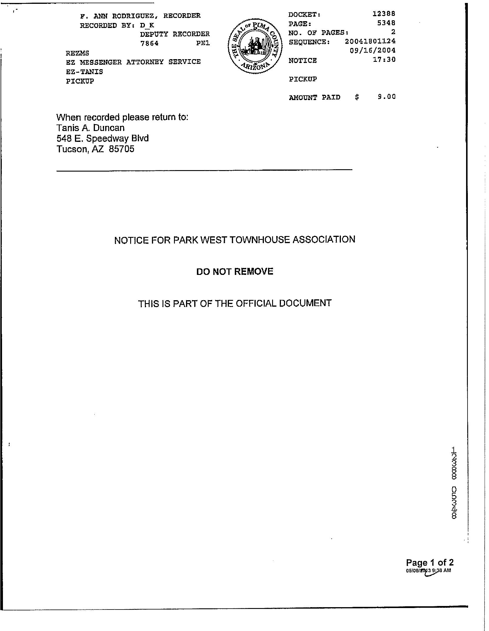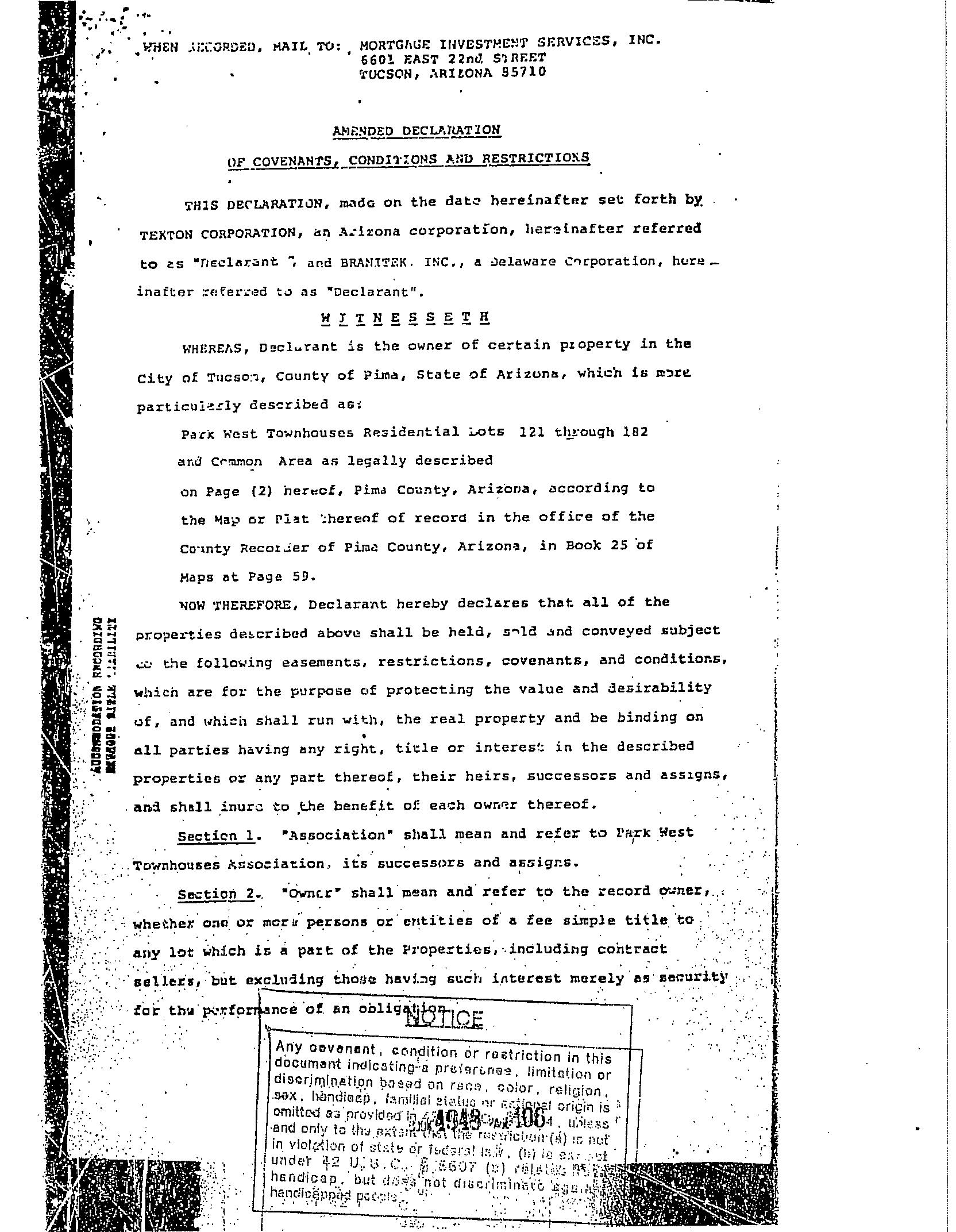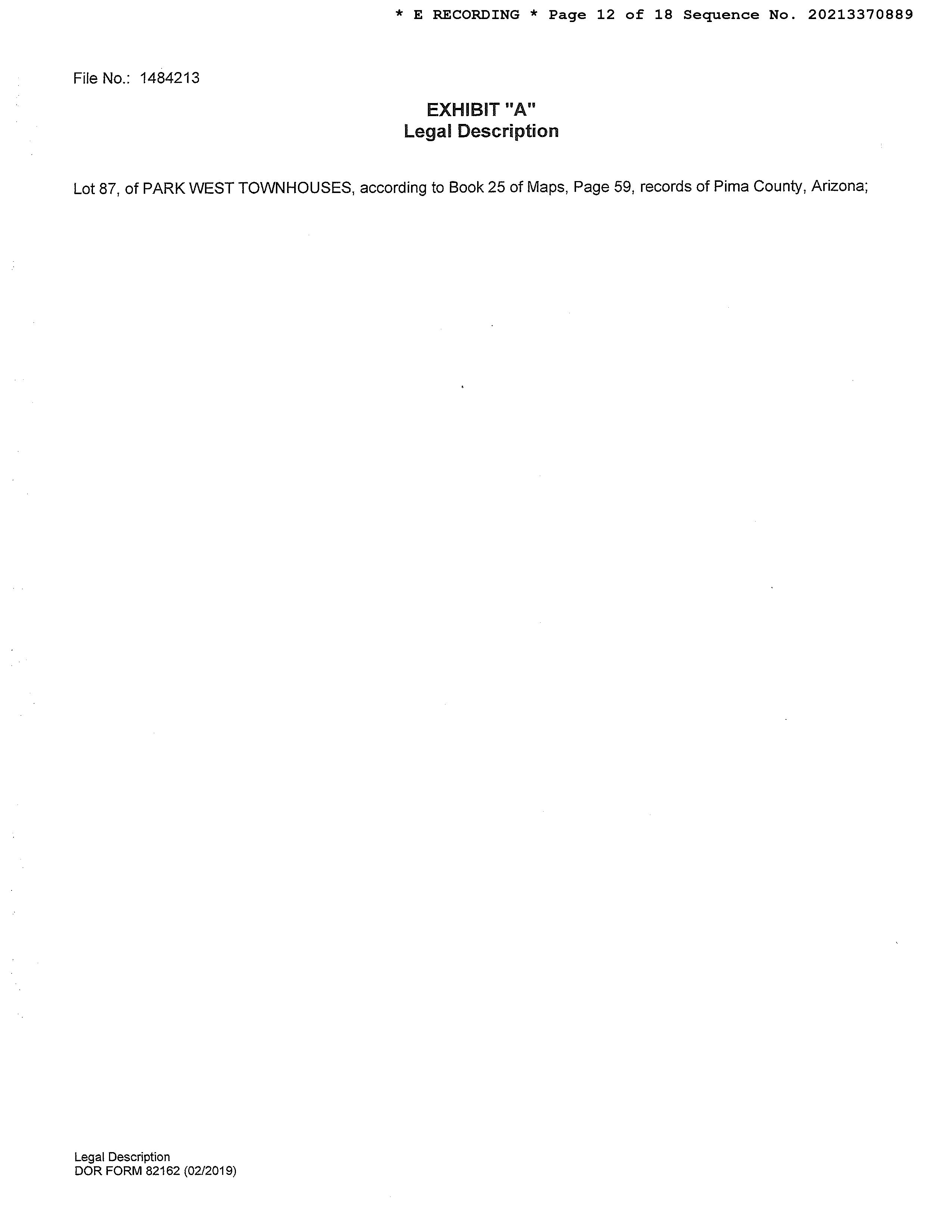 LEGAL: PARK WEST TOWNHOUSES LOT 87