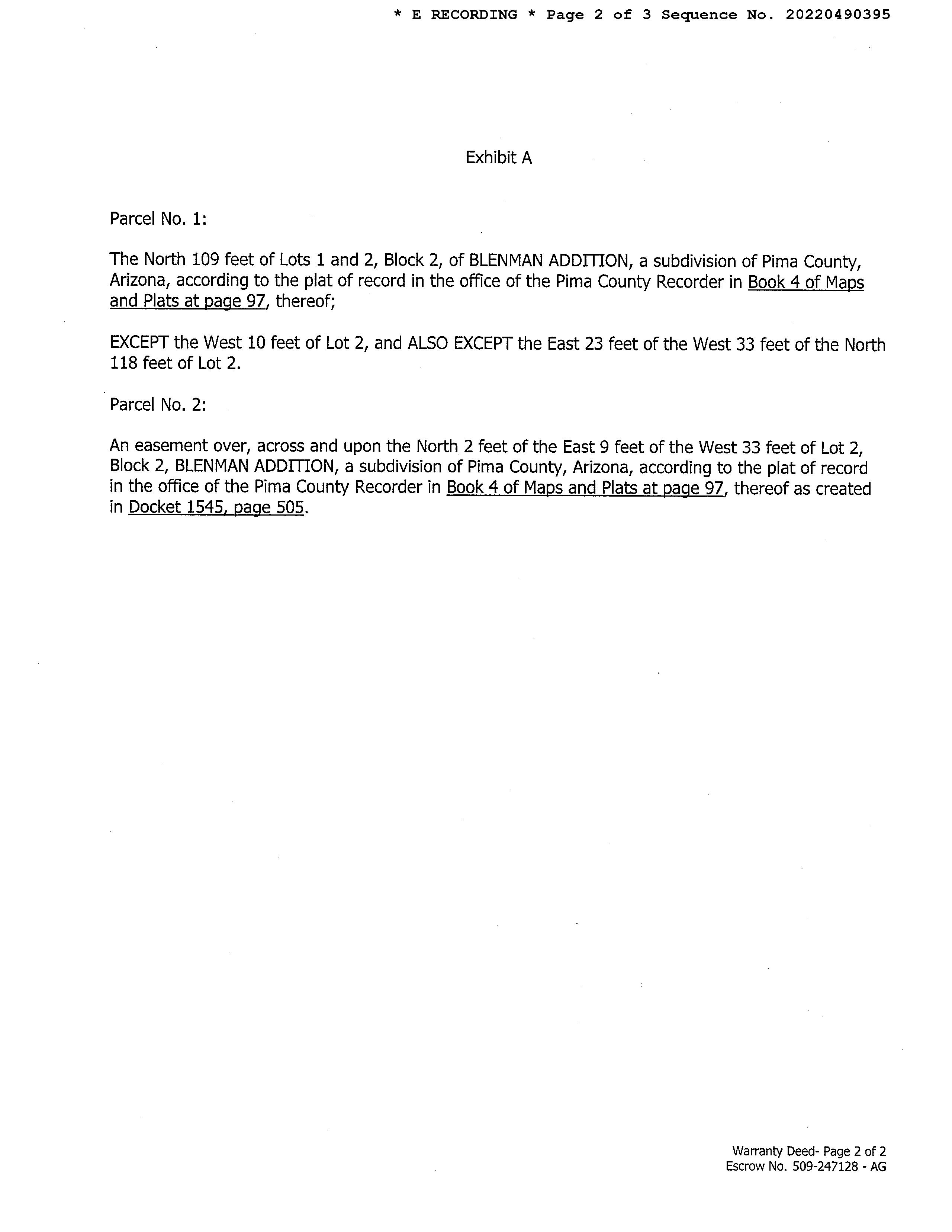Legal Description : Blenman N109' Lot 1 & N109' E17' Lot 2 Blk 2
