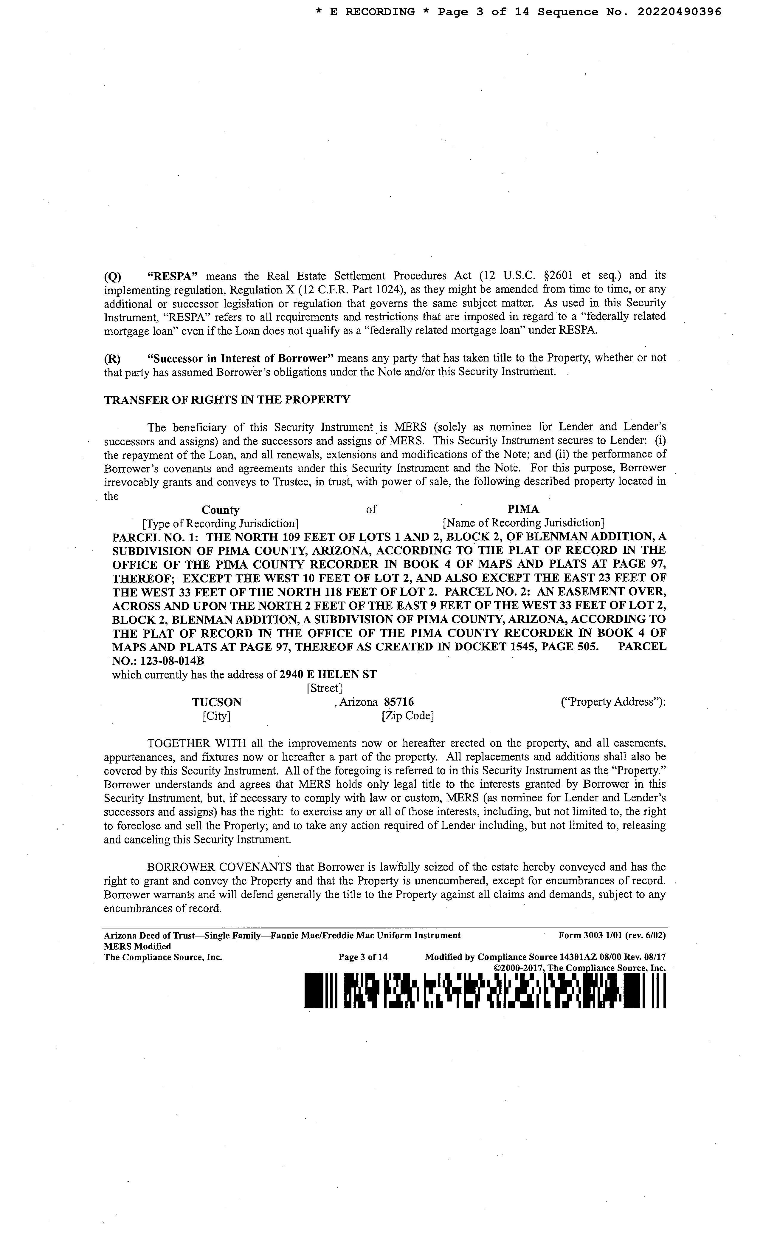 Mailing Address : 2940 E Helen St, Tucson AZ 85716-3813 C033
