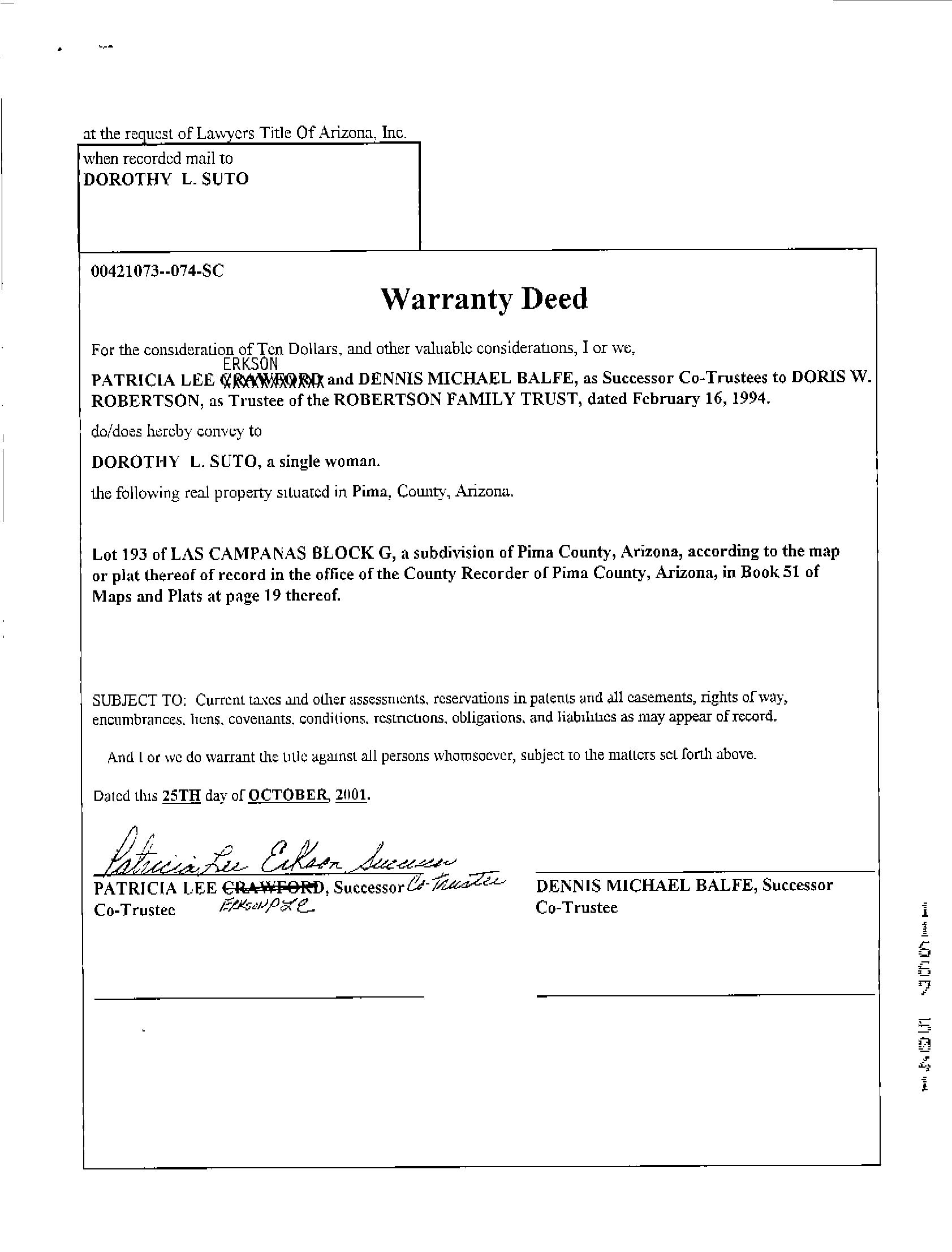 Recording/Sale Date : 11/01/2001 / 10/25/2001