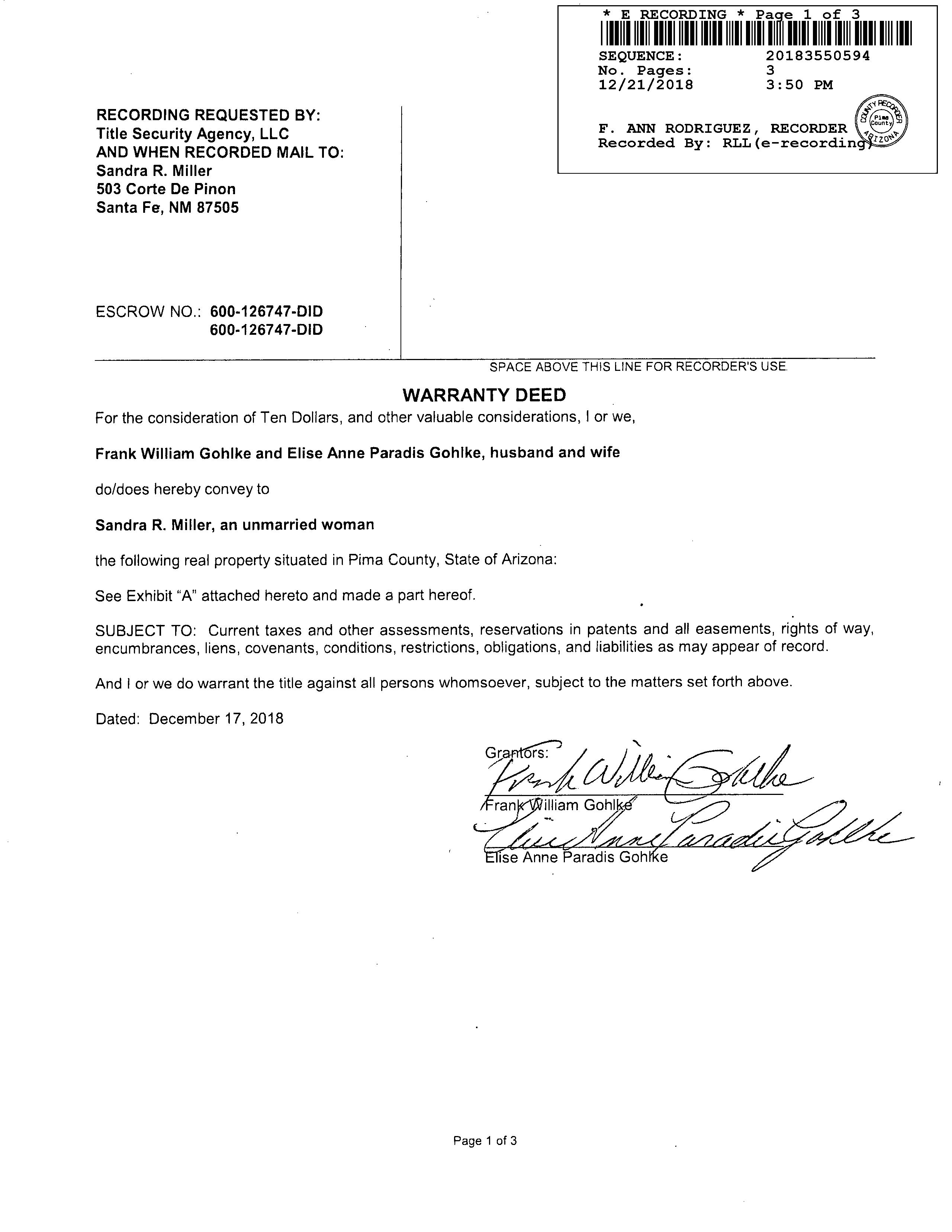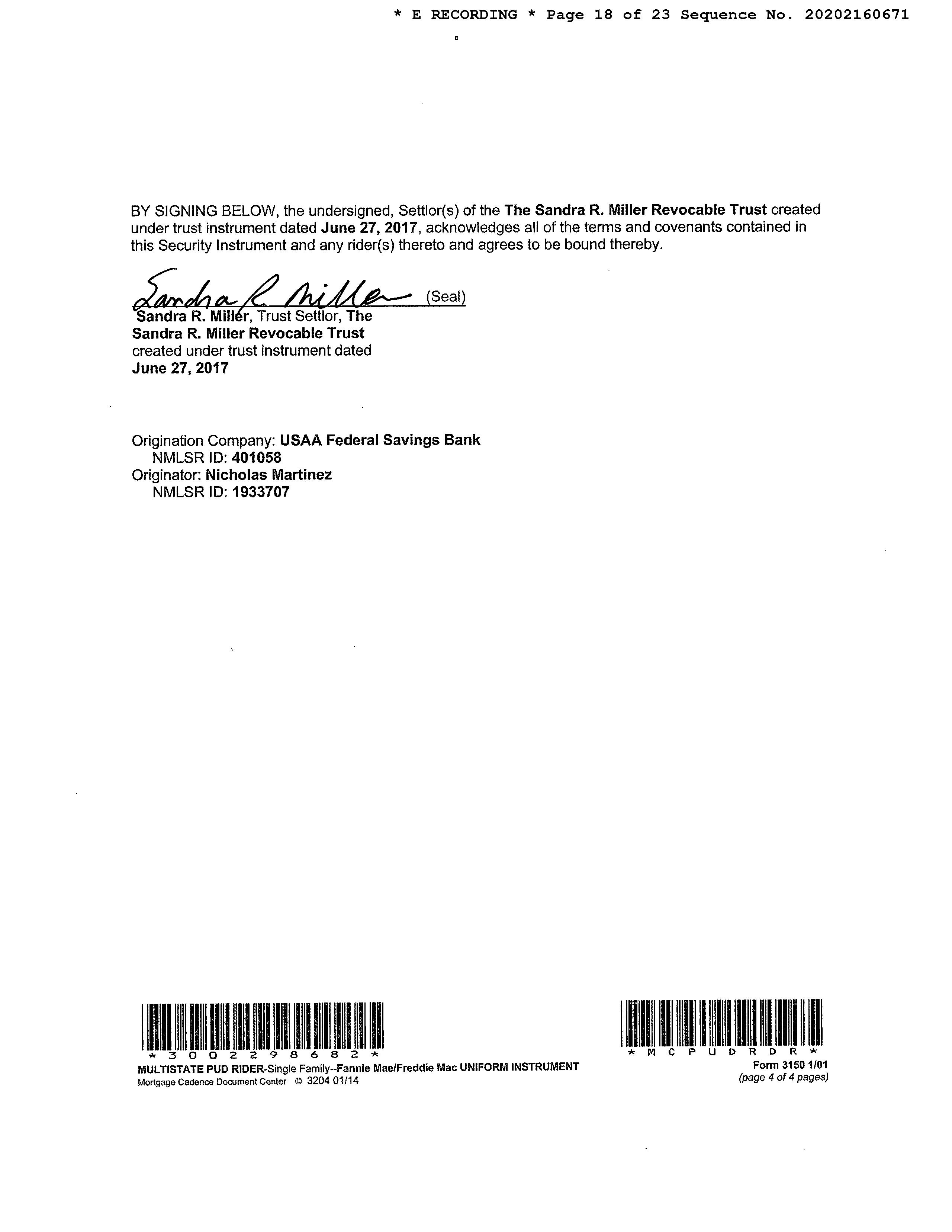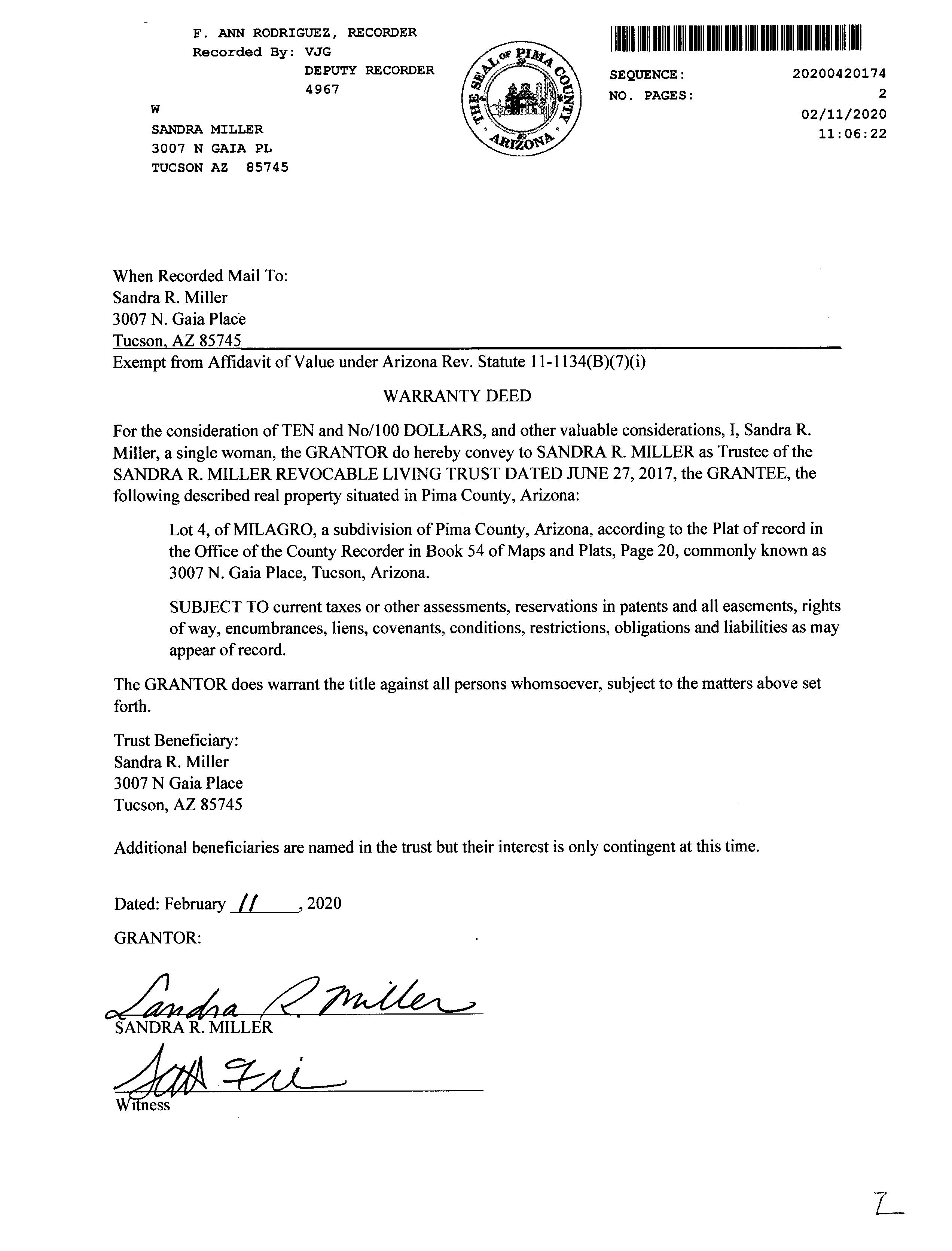 OWNER: MILLER SANDRA R AFFIDAVIT 2018 3550594 12/21/2018