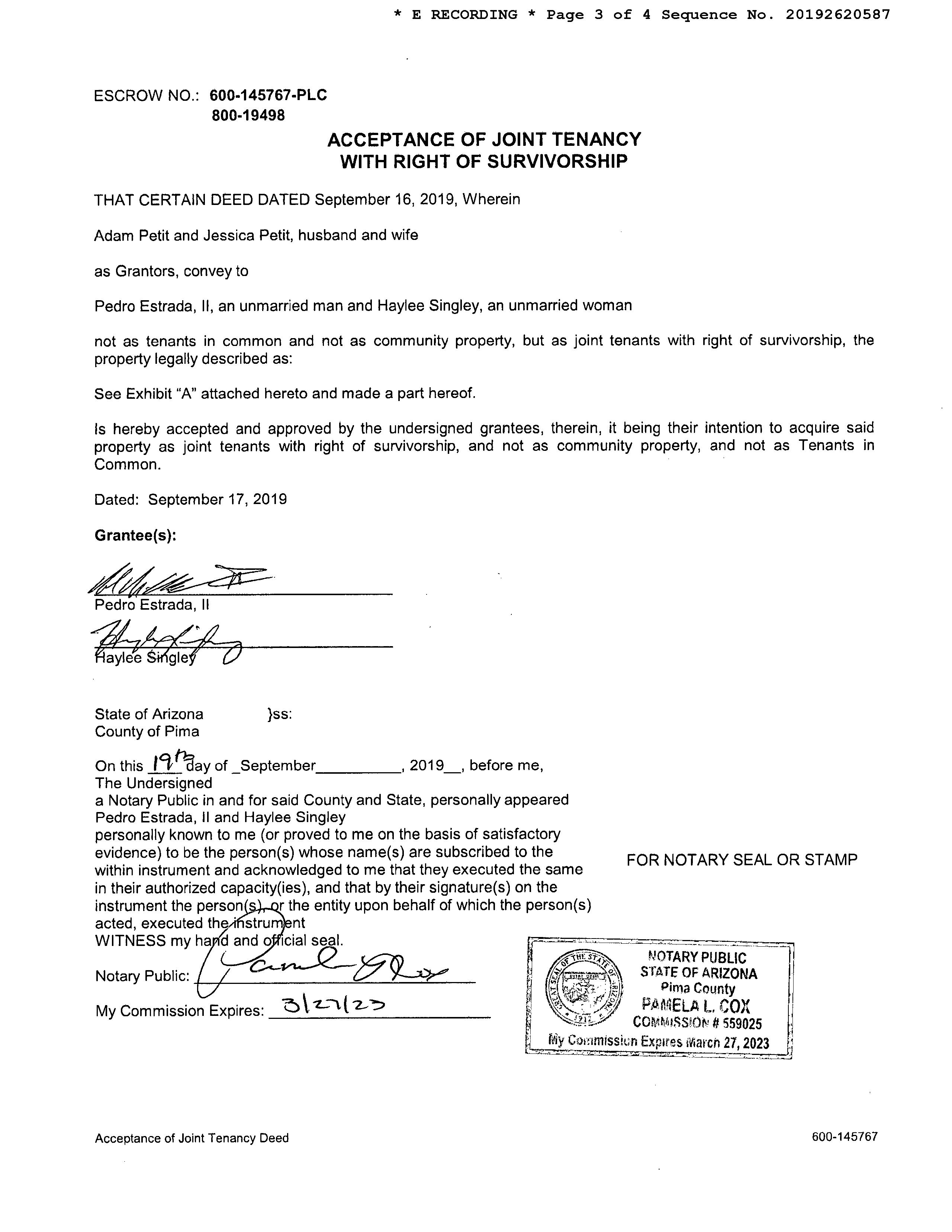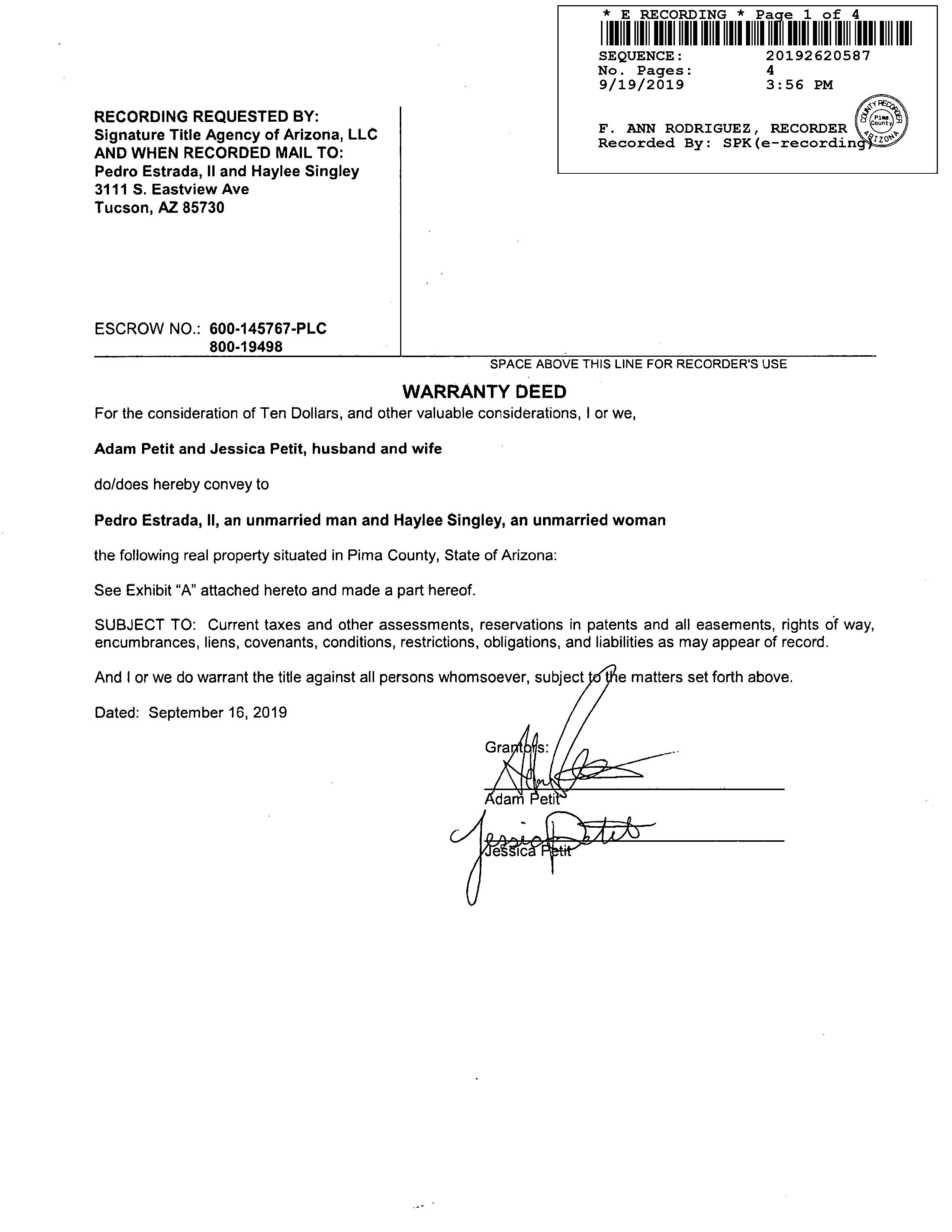 Owner Name : Estrada Pedro Ii / Singley Haylee