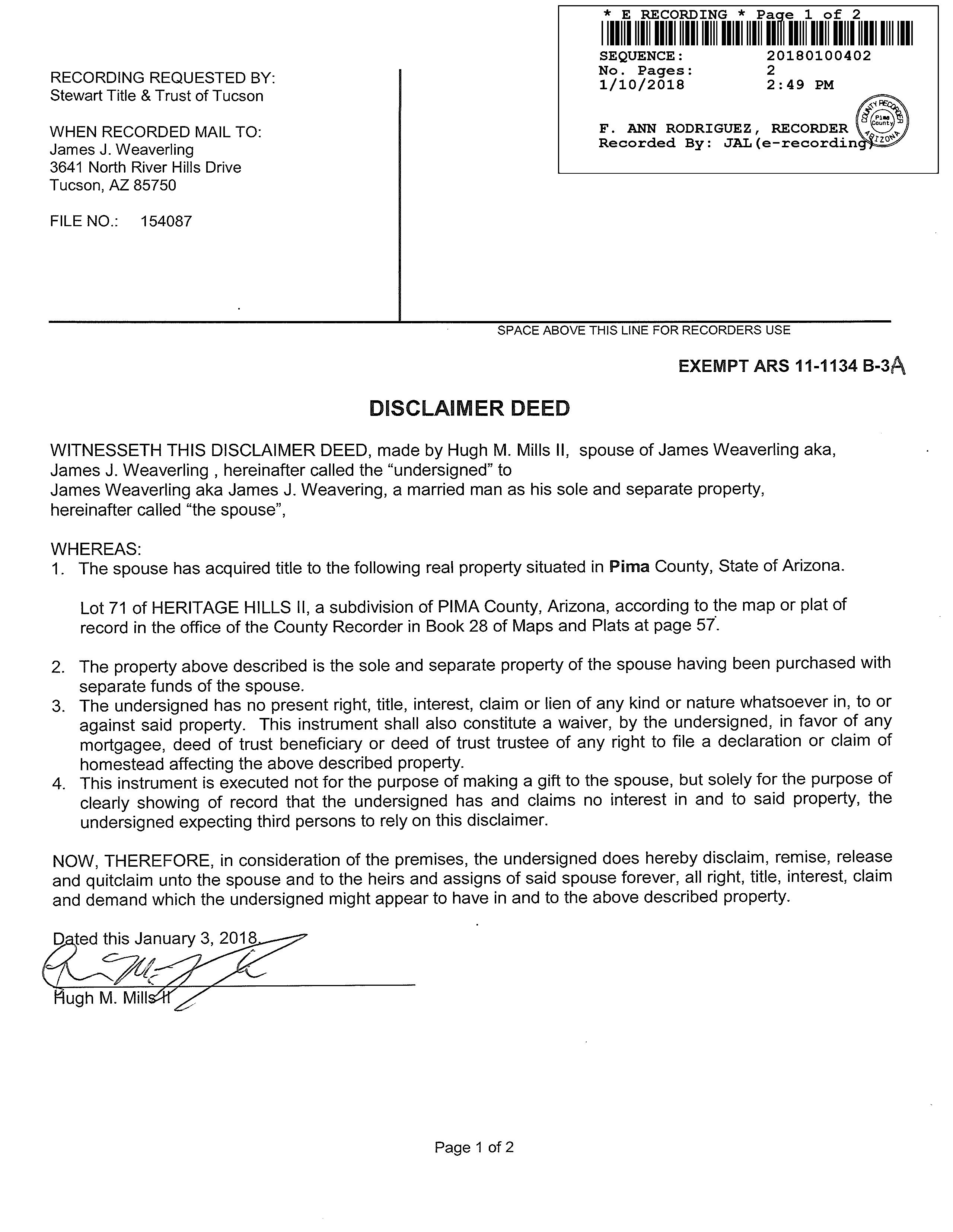Mailing Address : 3120 W Massingale Rd, Tucson AZ 85741-1747 C007