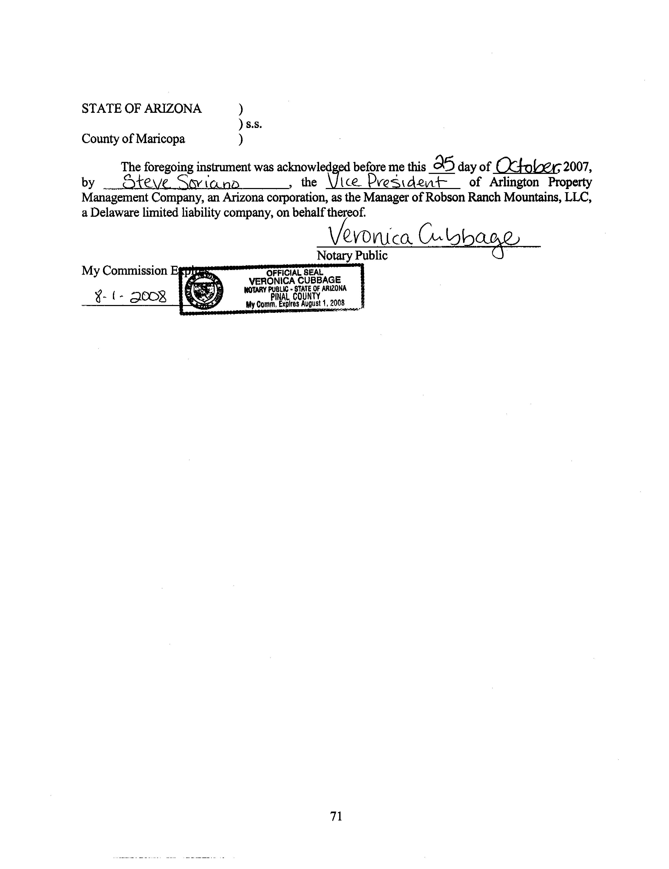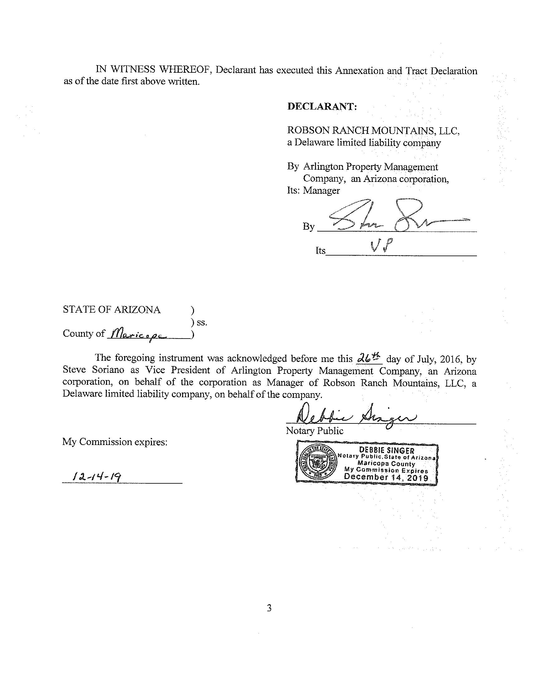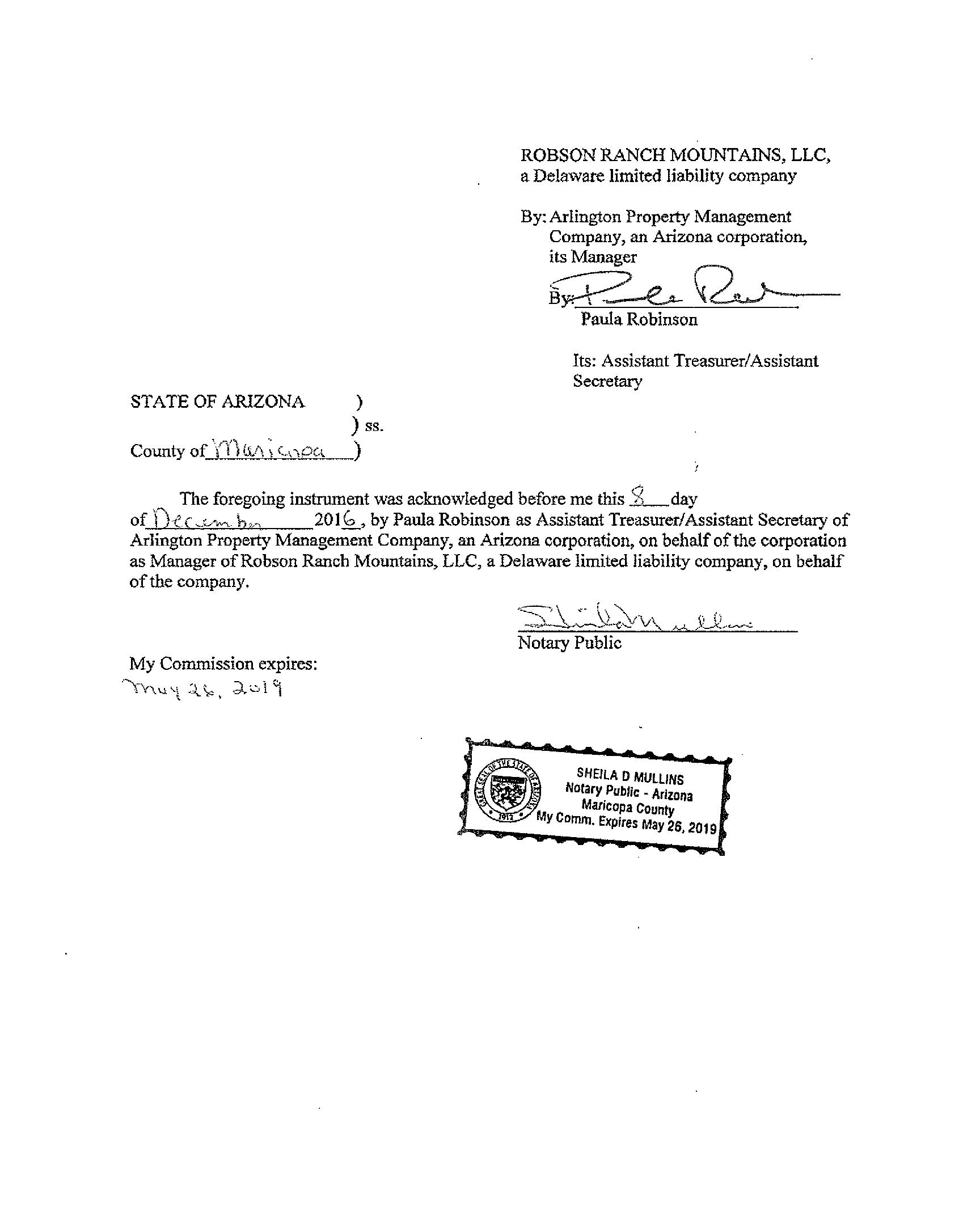Seller Name : Robson Ranch Mountains Llc