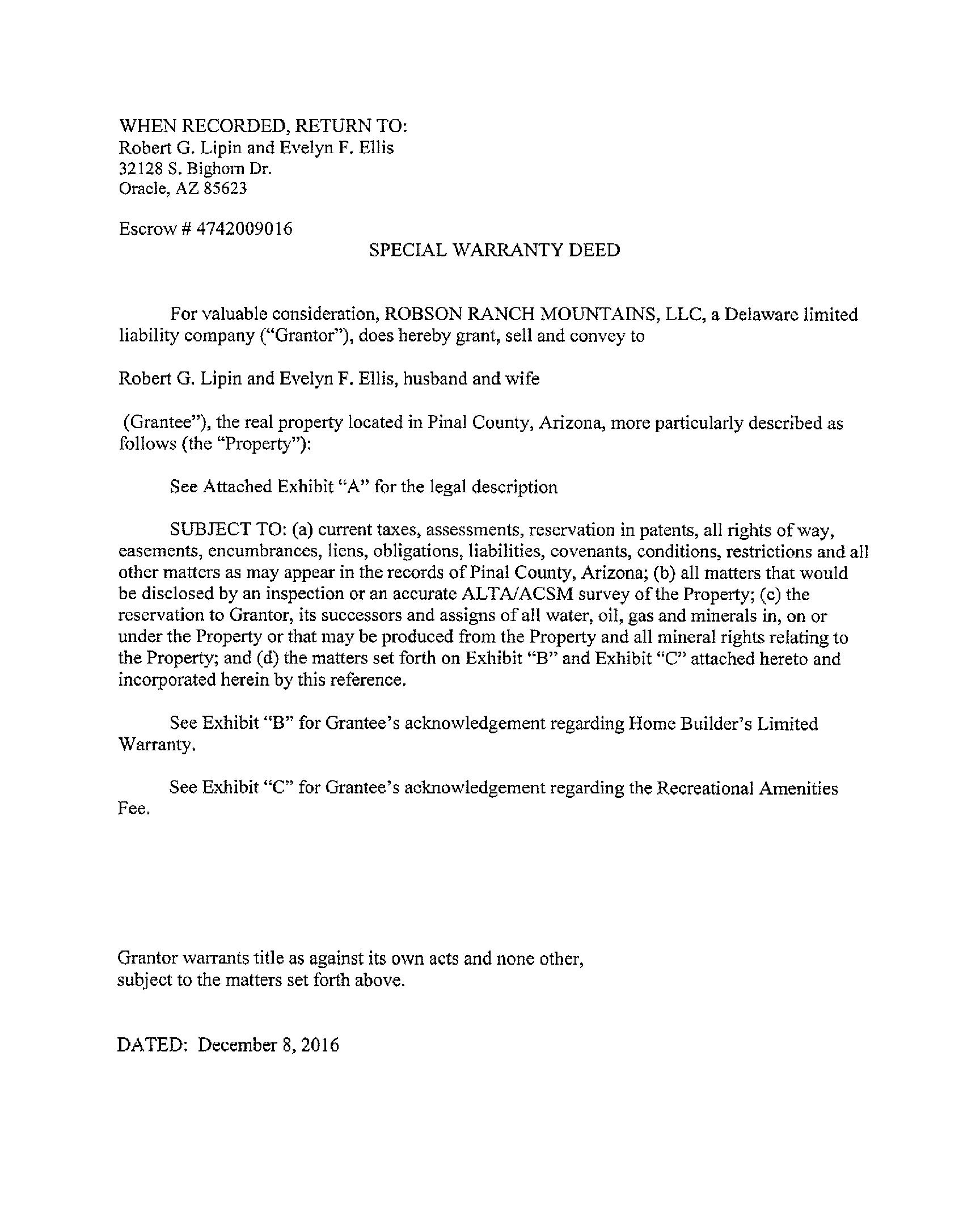 Owner Name: Lipin Robert G /Ellis Evelyn F APN / Alternate APN: 305-14-254 / Deed Type: Special Warranty Deed