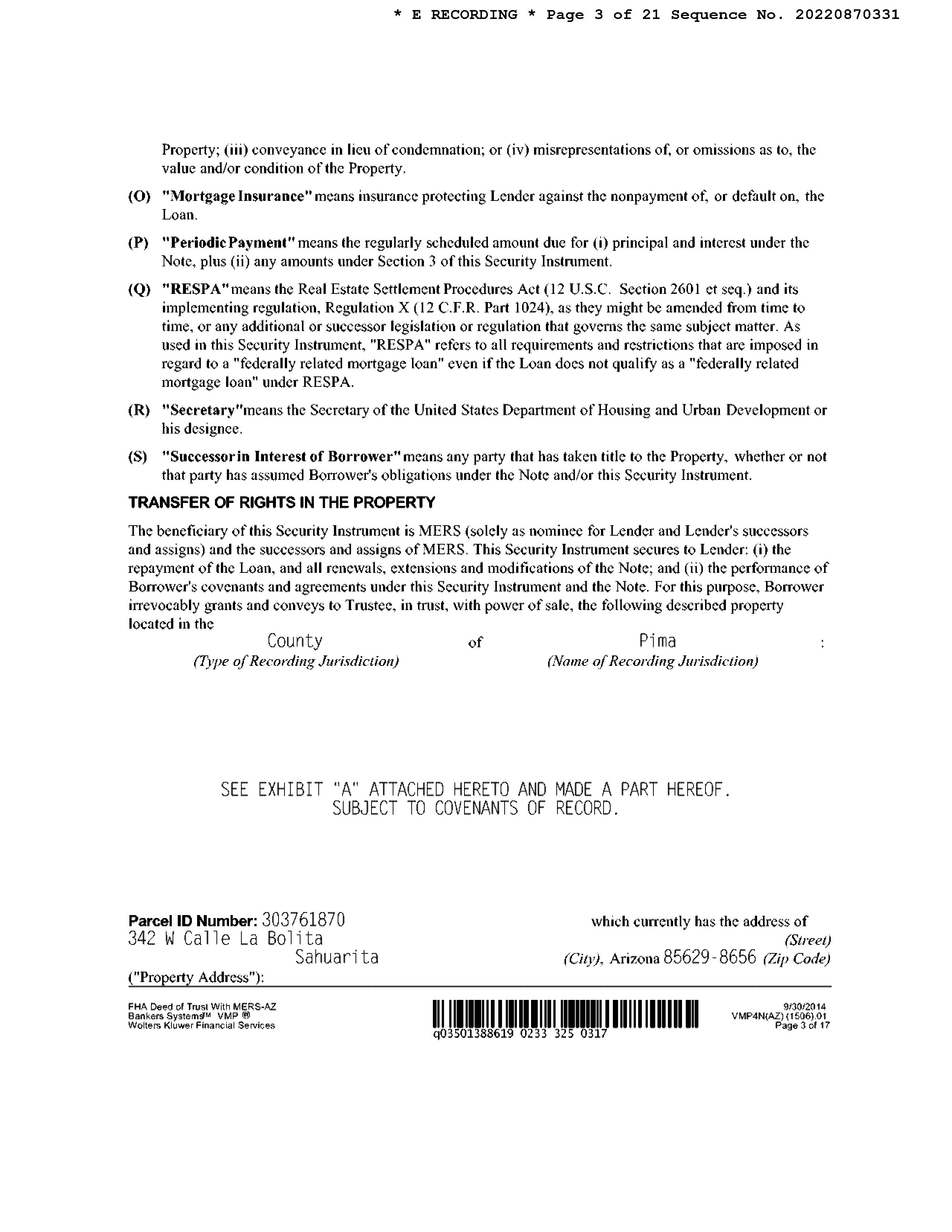 Subject Property : 342 W Calle La Bolita Sahuarita AZ 85629