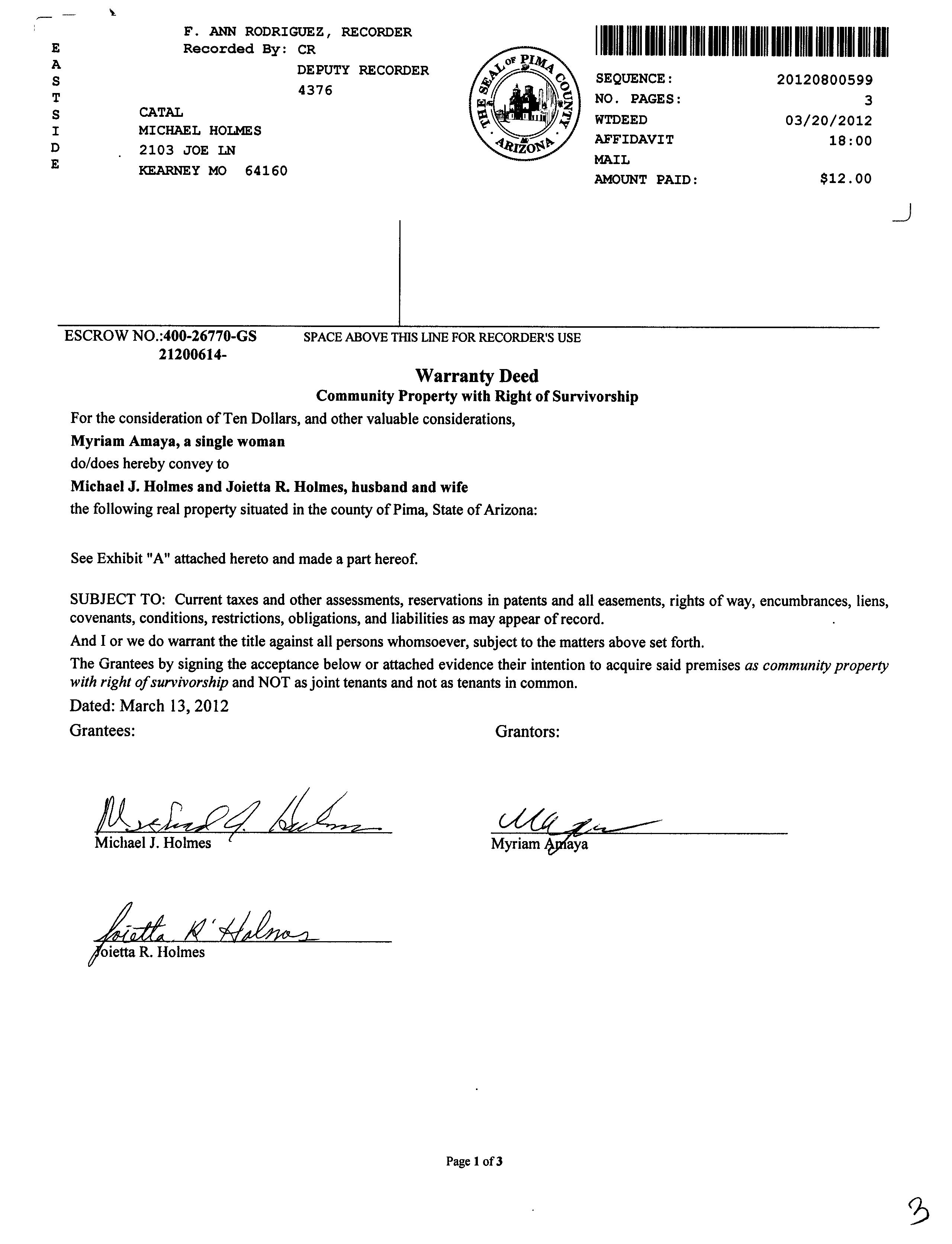 Owner Name : Holmes Michael J / Holmes Joietta R