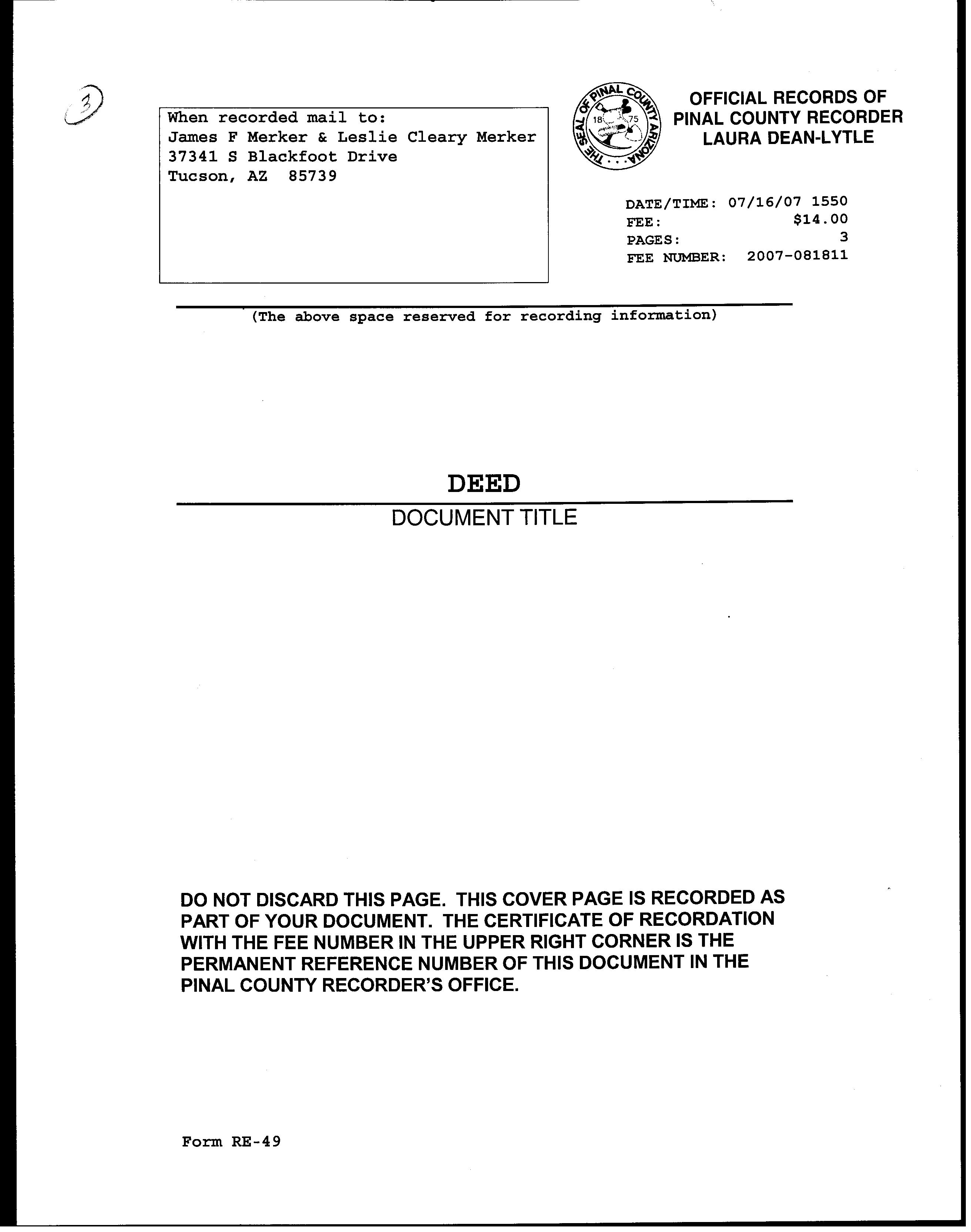 MAIL: 37341 S BLACKFOOT DR TUCSON AZ 85739