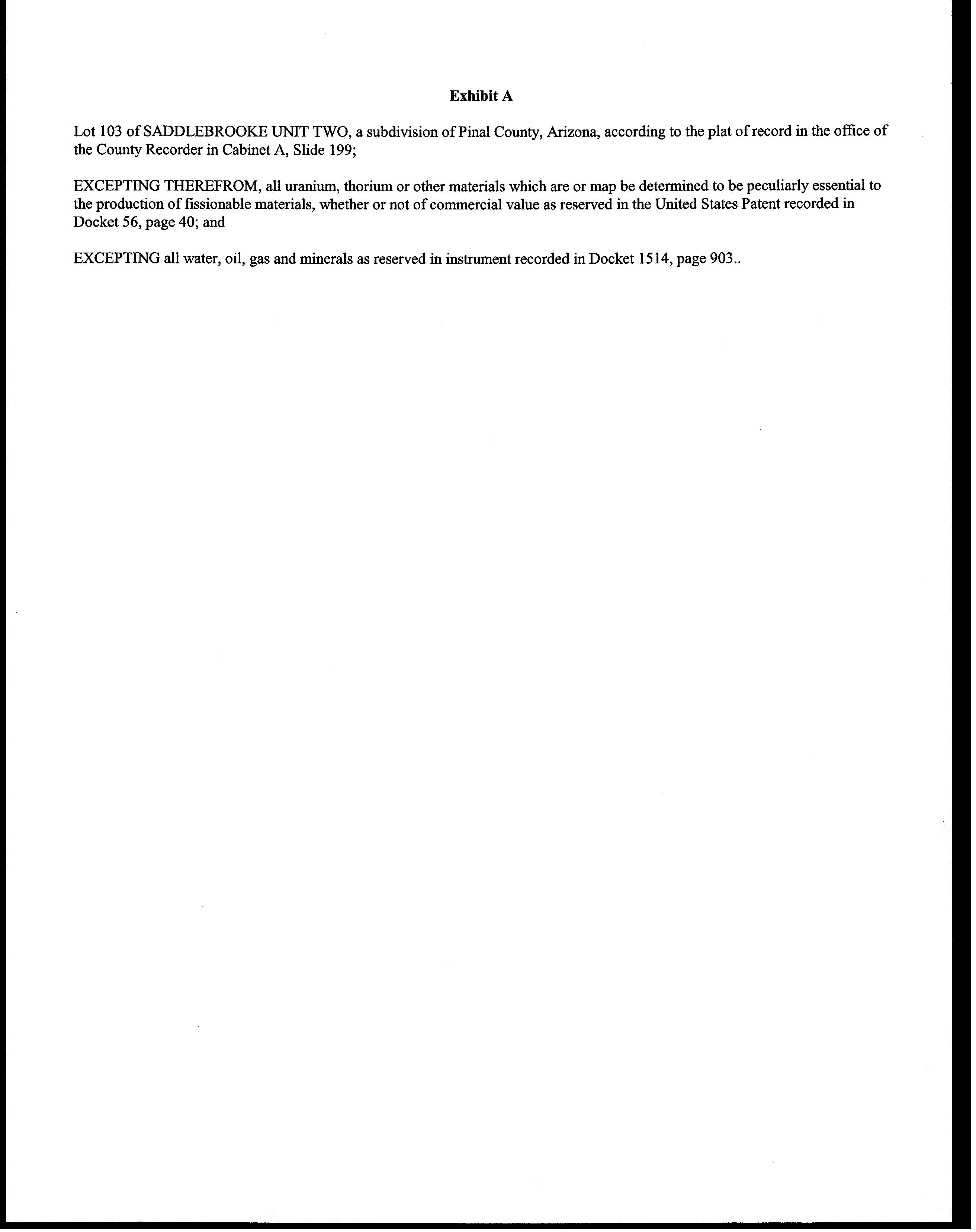 Legal Description : Saddlebrooke Unit Two: Lt 103 Sec 26 & 27-10s-14e 7638 Sq Ft Caba Sld 199
