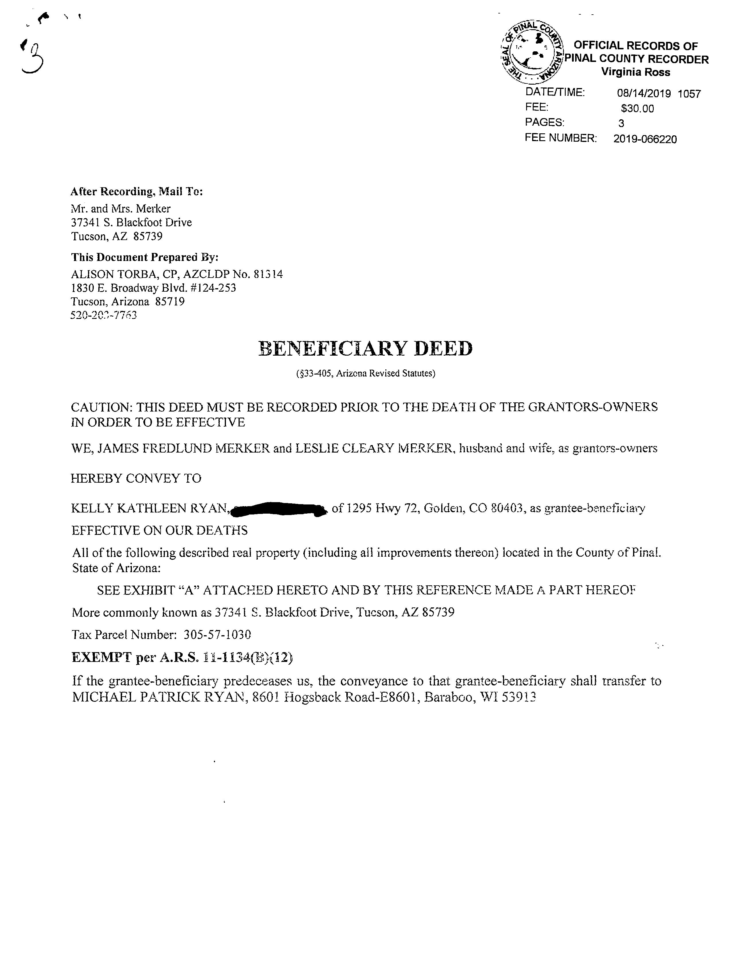 Mailing Address : 37341 S Blackfoot Dr, Tucson AZ 85739-1042 R121