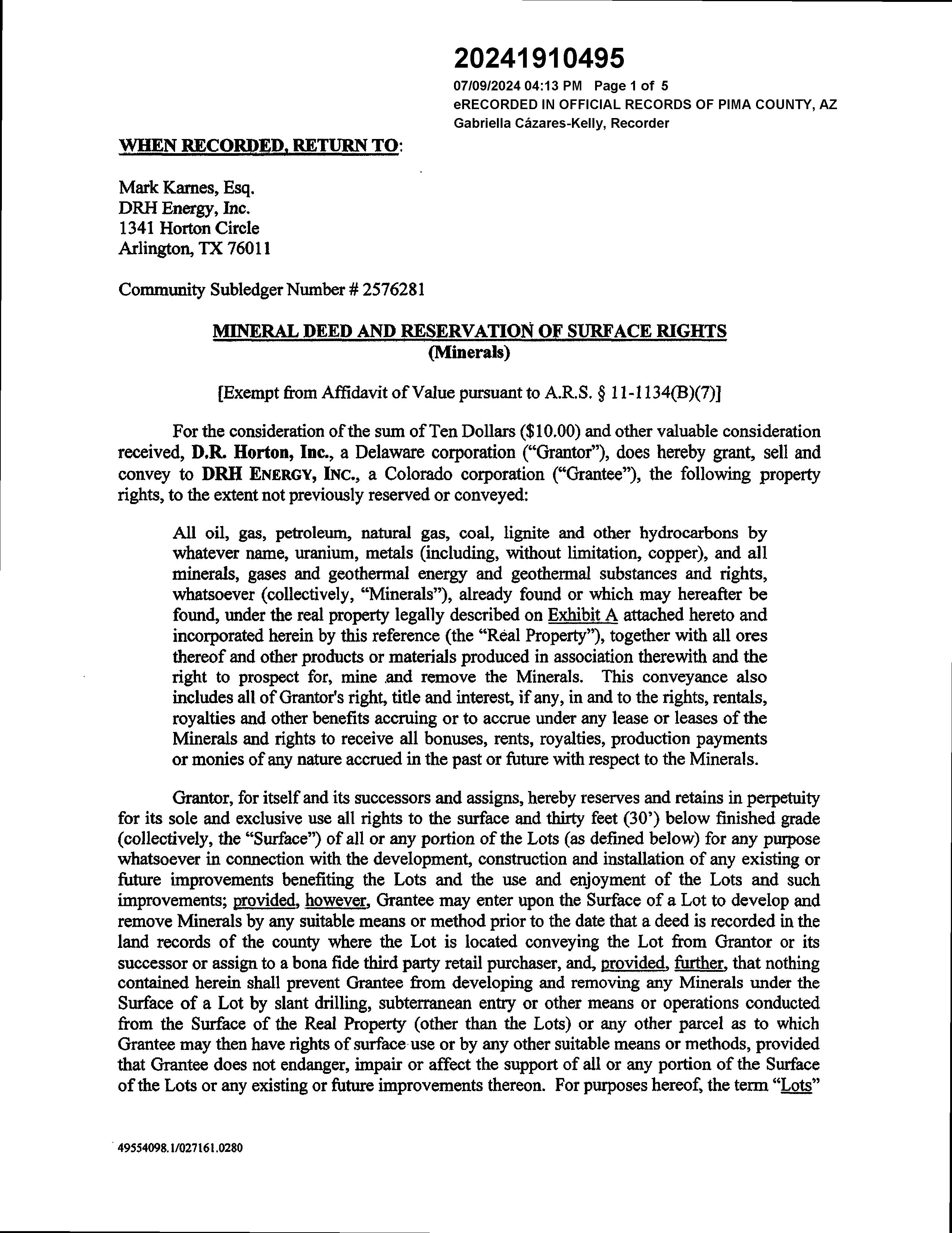 Legal Description : New Tucson Unit No 7 Lot 61 Exc Mineral Rights Below 30-ft