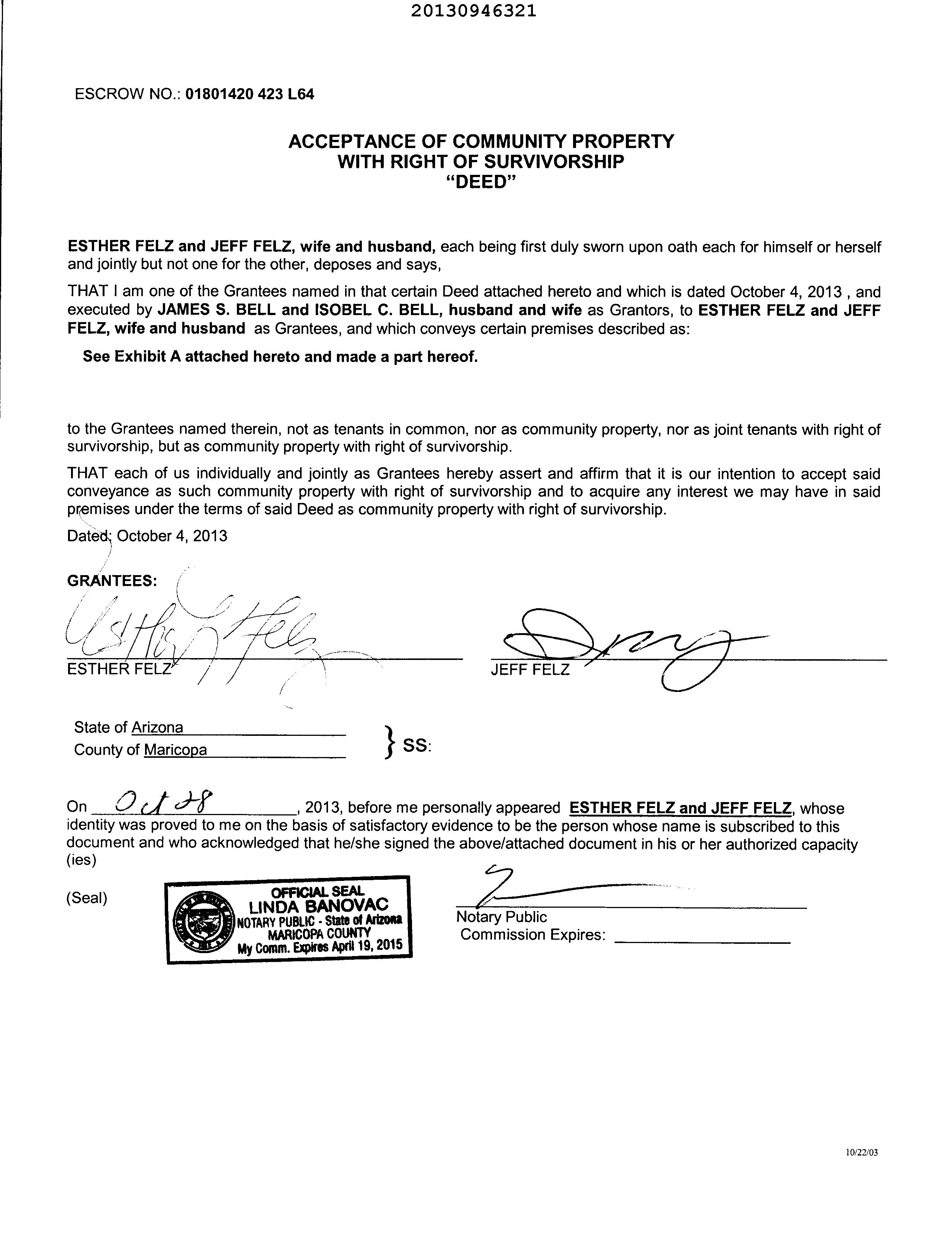 This document is prepared pursuant to the Arizona Planned Communities Act, A.R.S. §33-1801, et. seq., and establishes a planned community as defined therein.