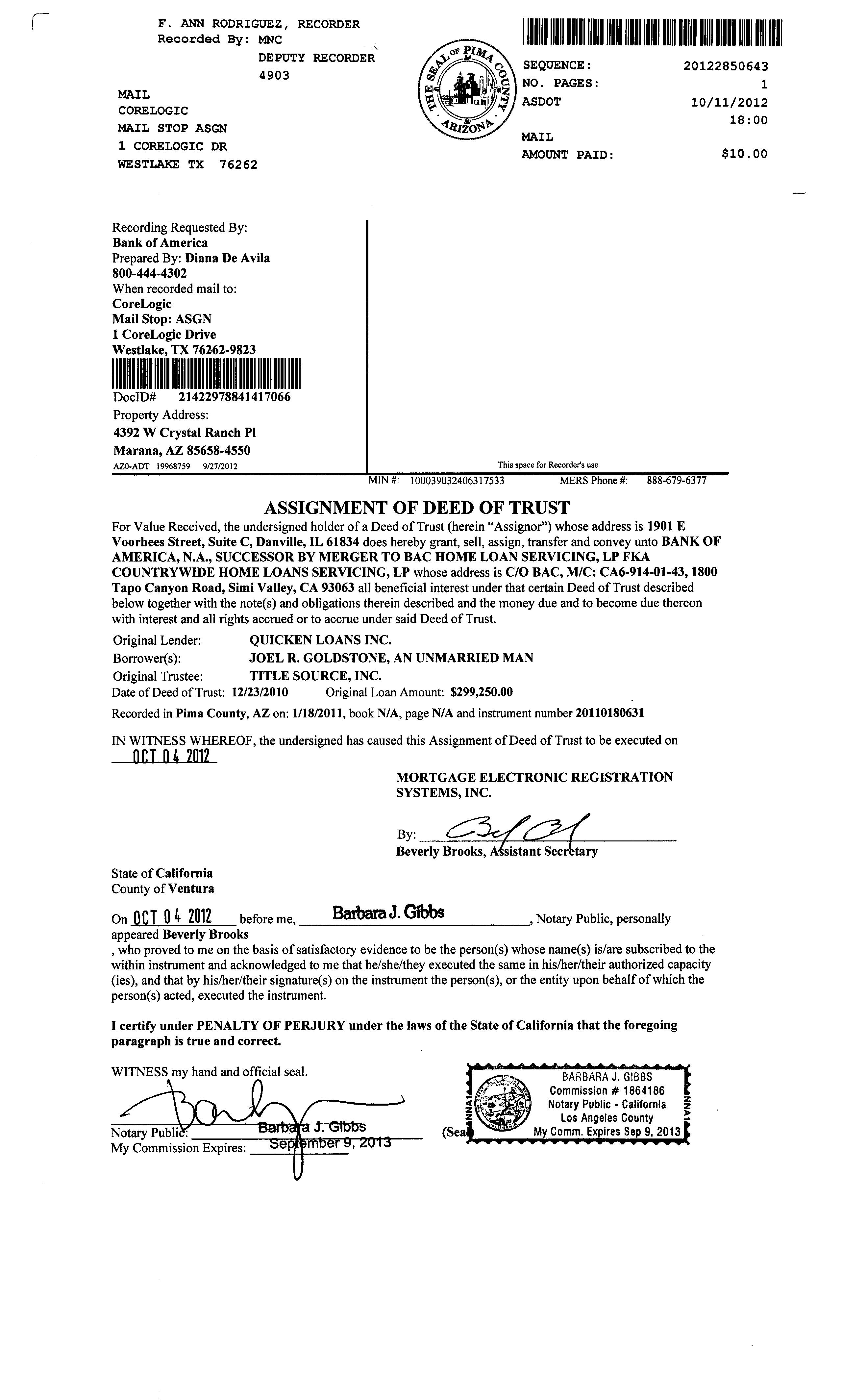 Owner Name: Goldstone Joel R / APN / Alternate APN: 224-13-0440 / Deed Type: Special Warranty Deed