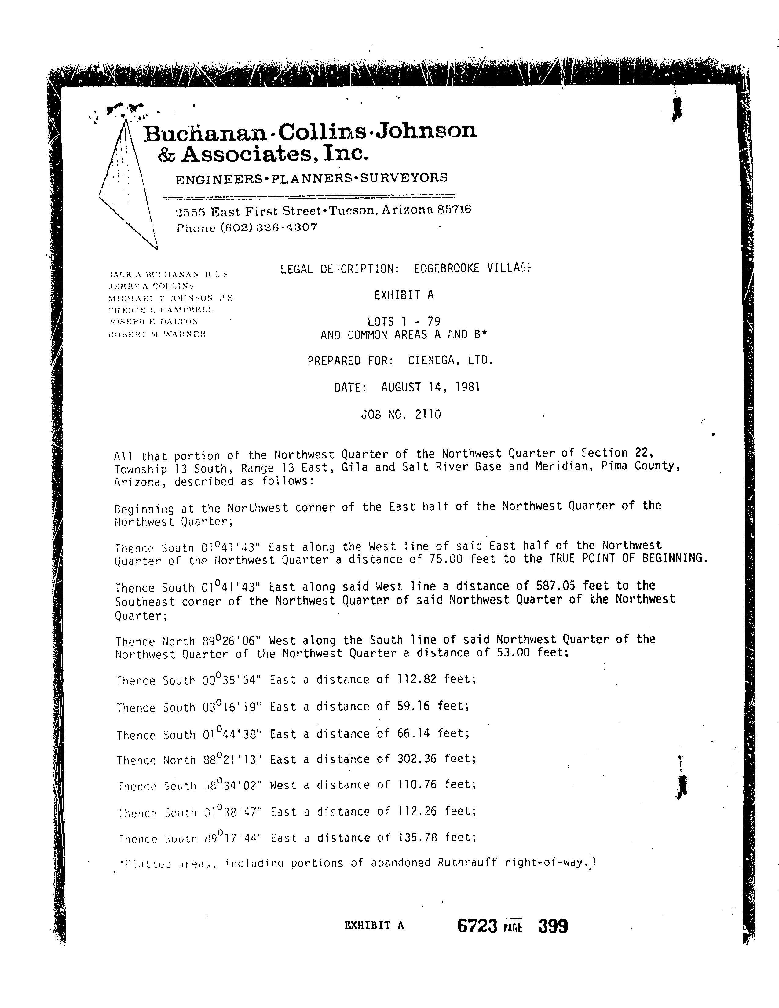 Subject Property : 4600 N Brightside Dr Tucson AZ 85705