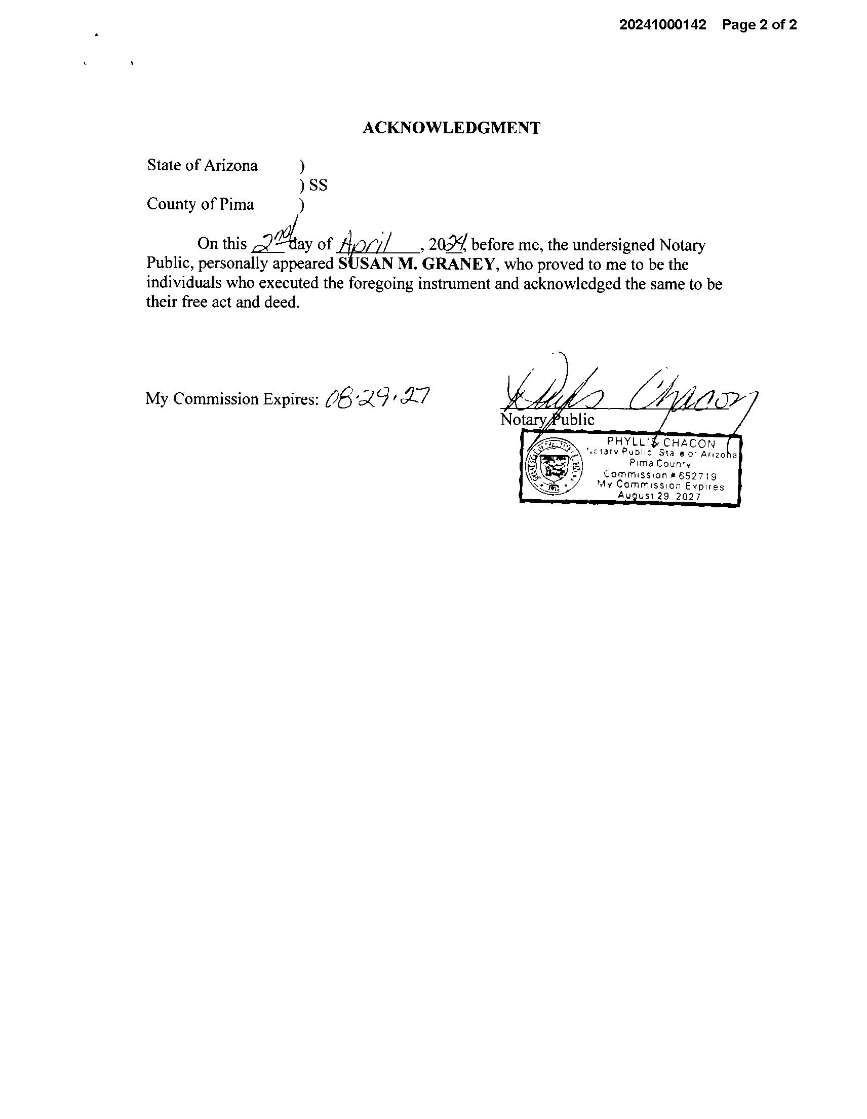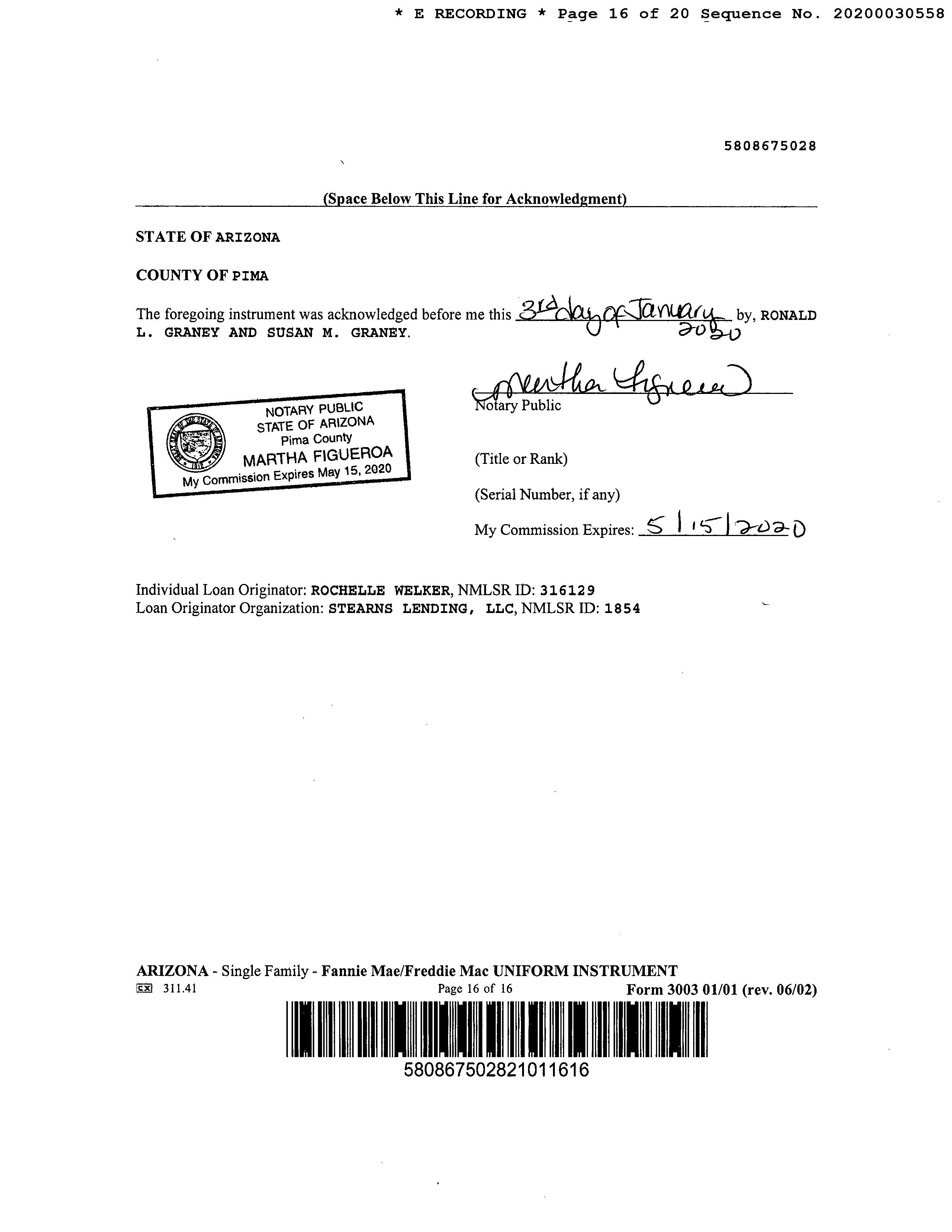 OWNER: GRANEY RONALD L & SUSAN M AFFIDAVIT 2020 30557 01/03/2020