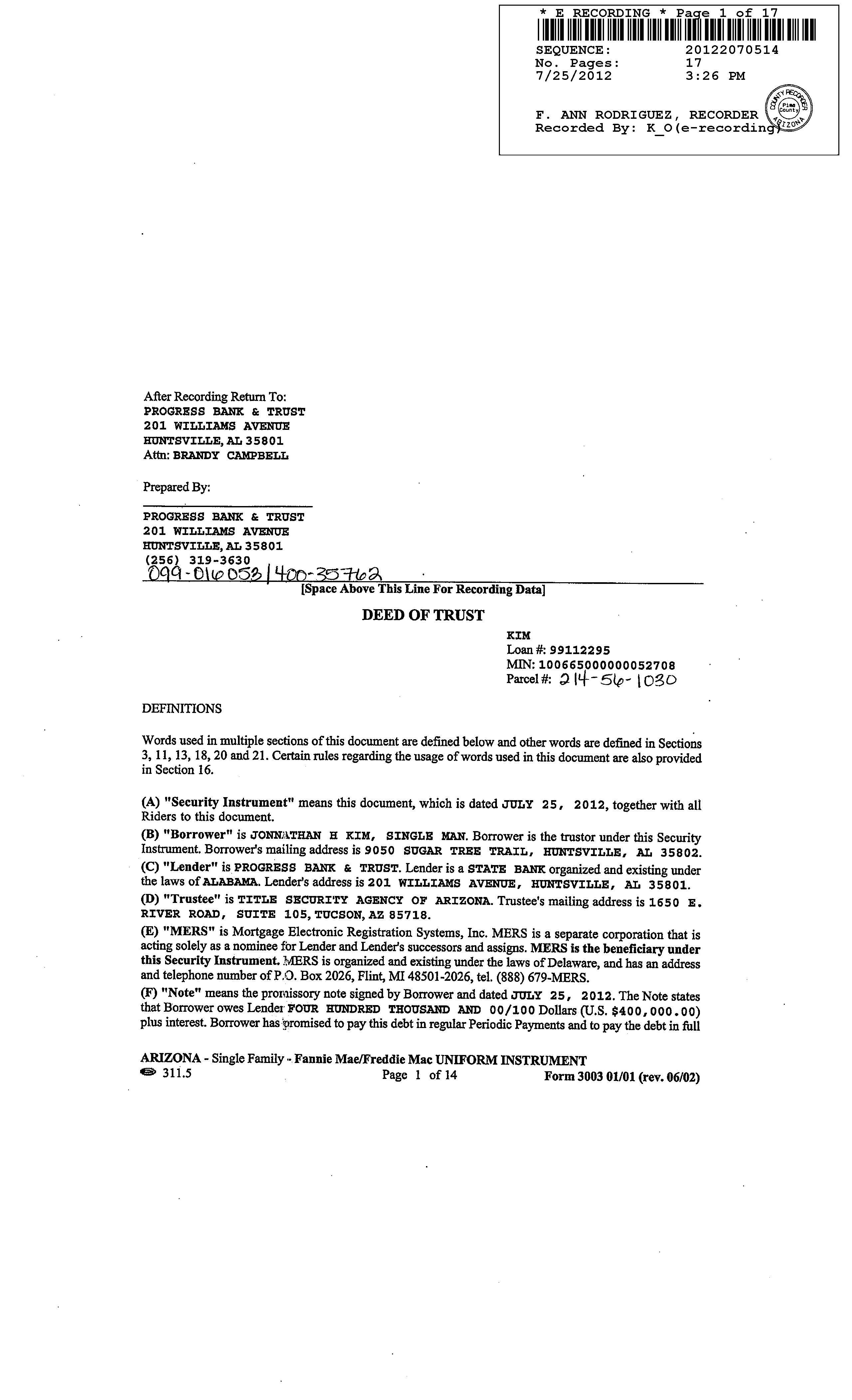 Know that our wiring instructions do not change so any communication is suspect. Our banking institution is First American Trust.