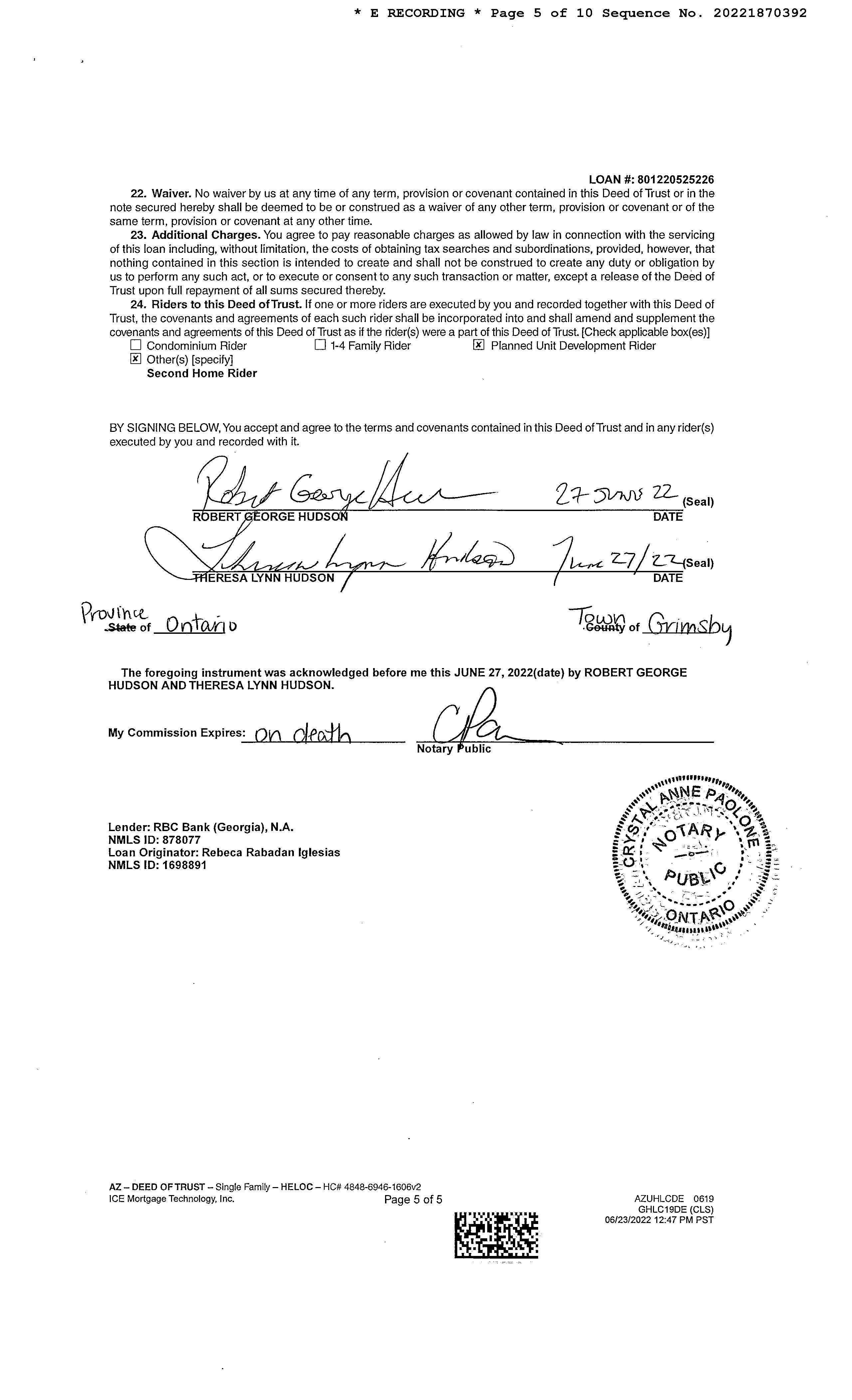 Owner Name : Hudson Robert George / Theresa Lynn Cp & R