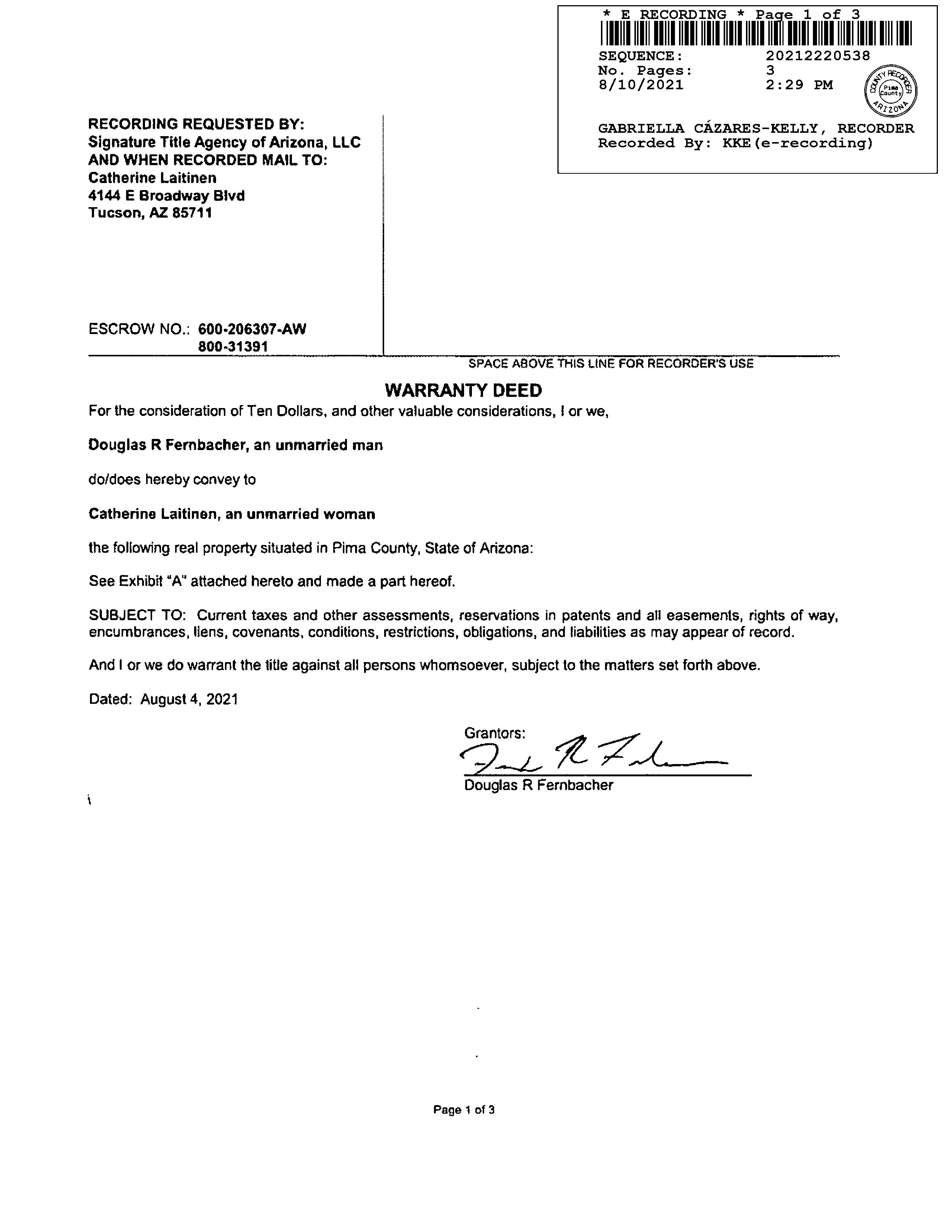 Owner Name: Laitinen Catherine / APN / Alternate APN: 114-14-1320 / Deed Type: Warranty Deed