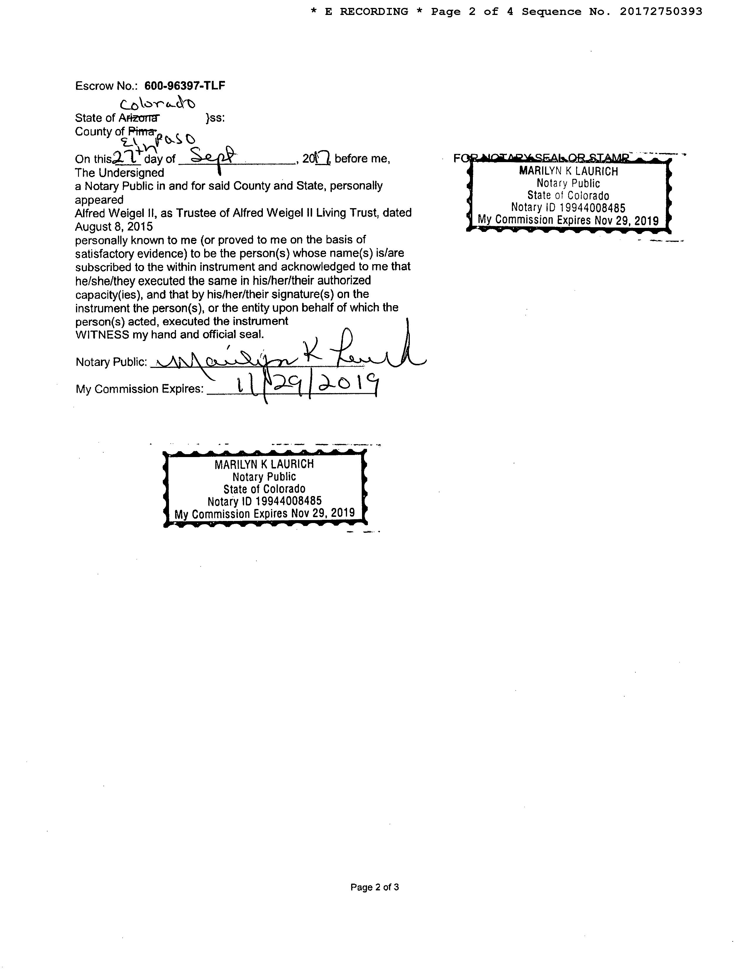 Seller Name : Weigel Alfred Ii Living Trust