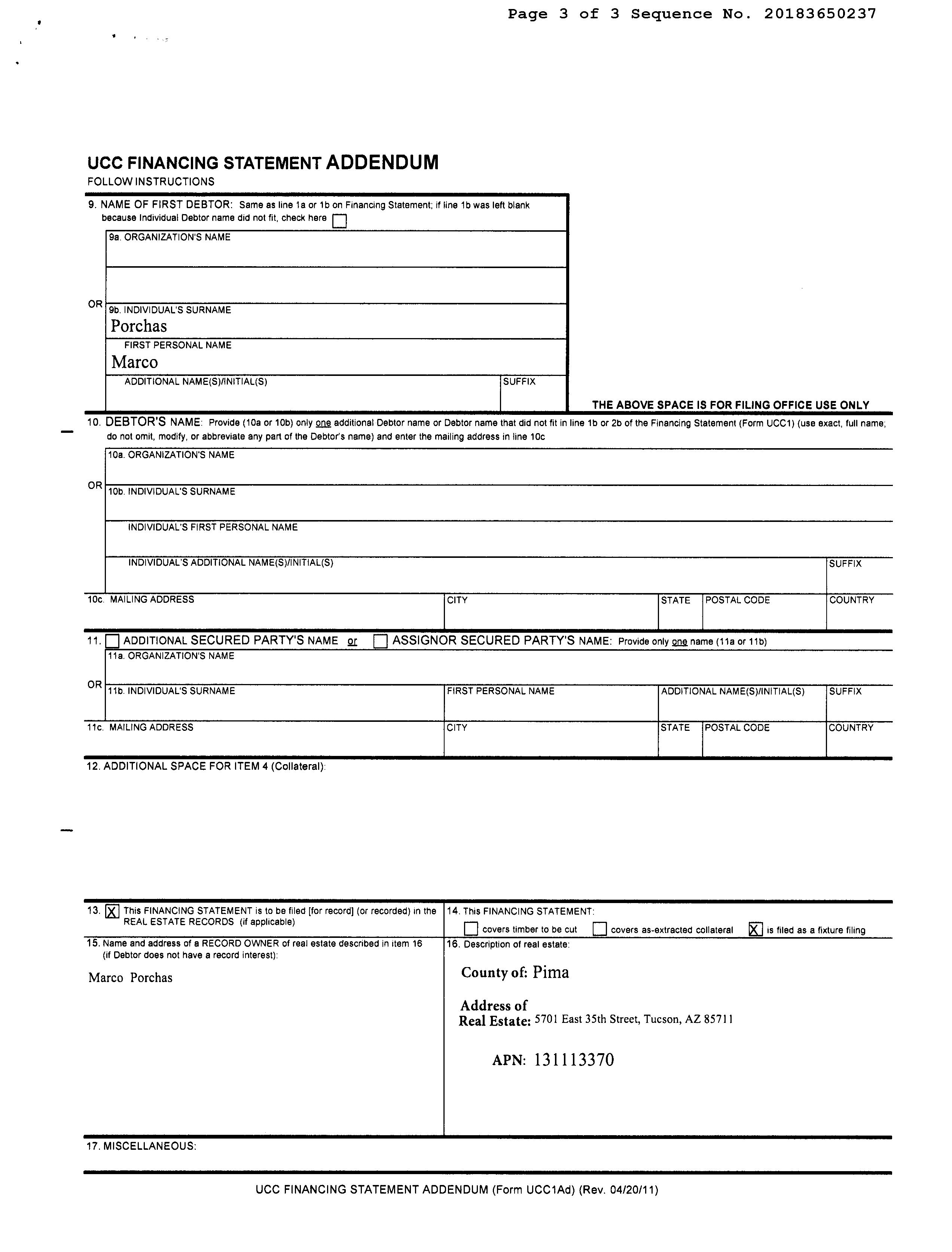 OWNER: PORCHAS MARCOS ANTONIO & LY AFFIDAVIT 2018 1500314 05/30/2018