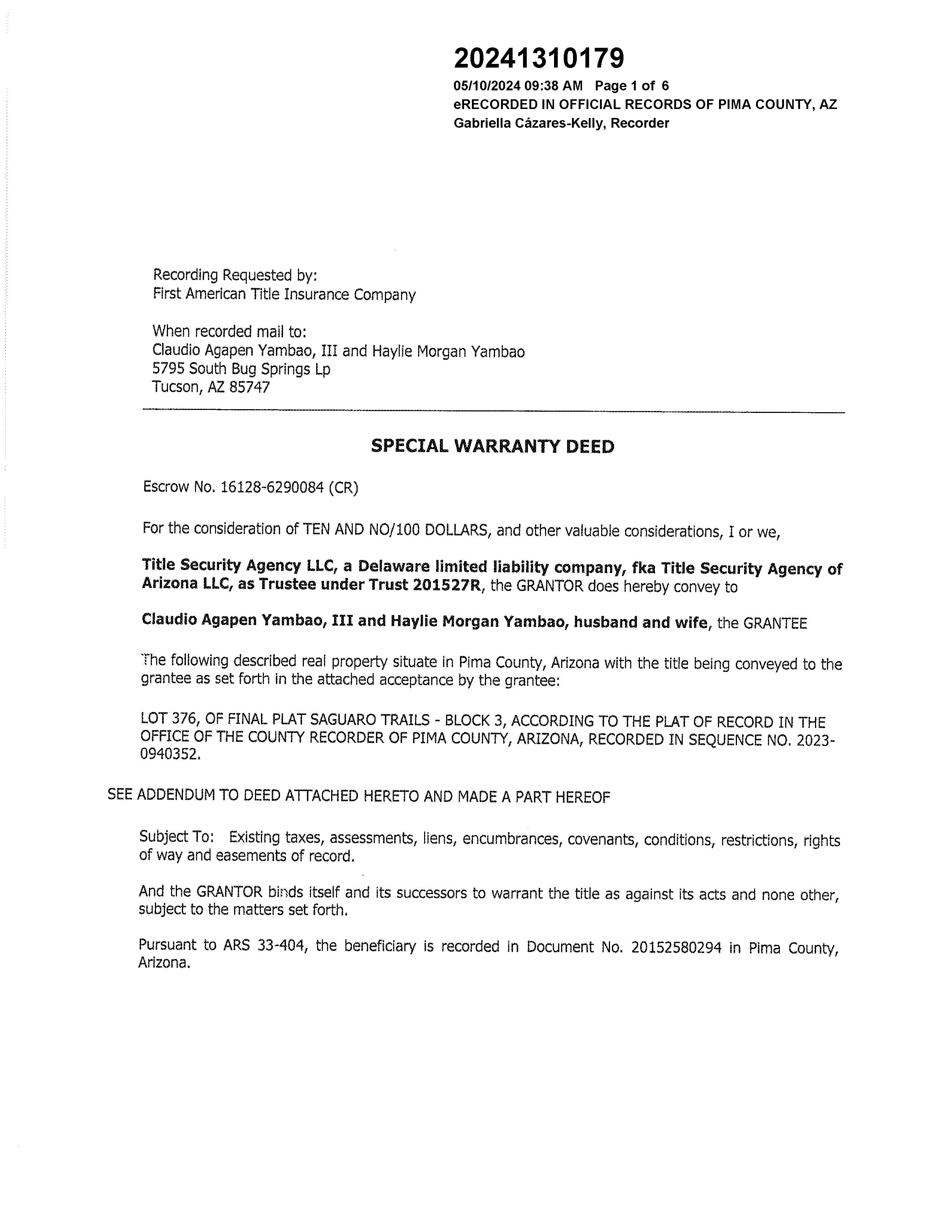 Title Insurance Policy. First American Title will deliver your policy and your recorded deed.