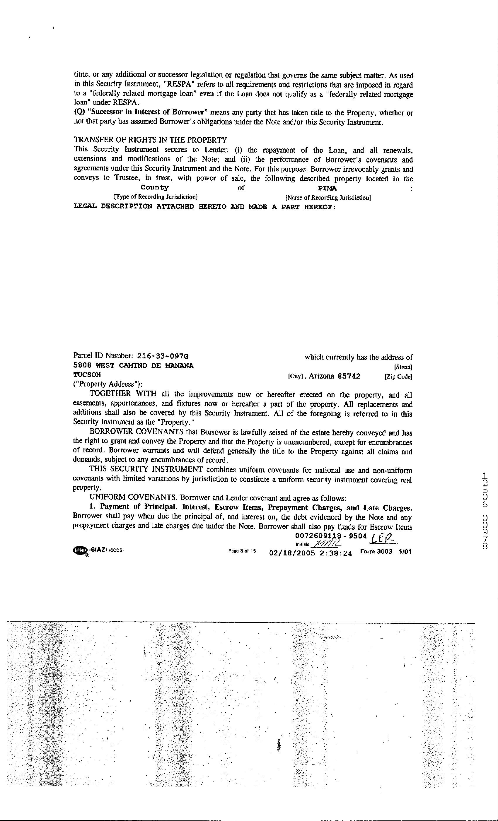 Mailing Address : 5808 W Twin Peaks Rd, Tucson AZ 85742-8513 R041