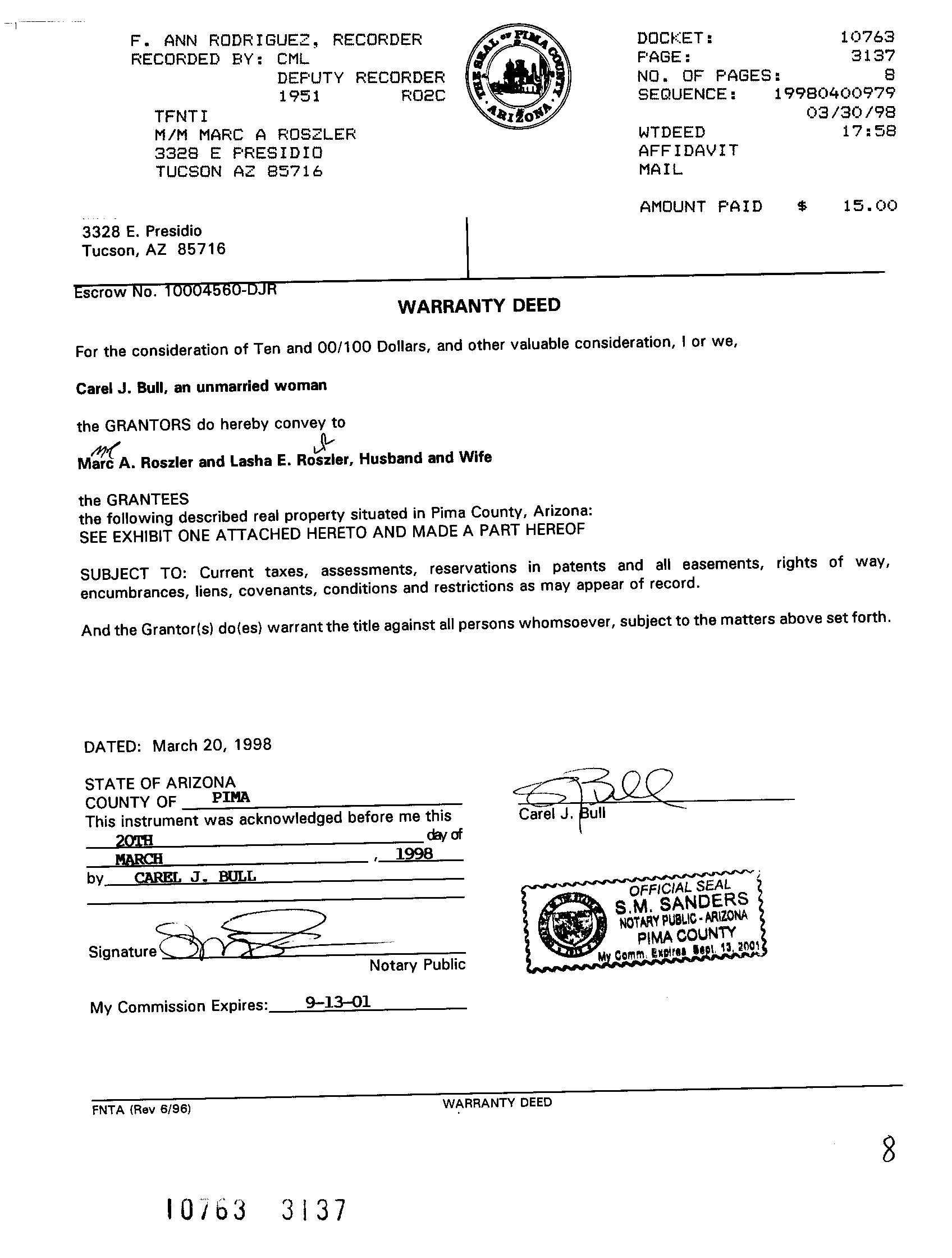 Owner Name : Roszler Marc A / Roszler Lasha E