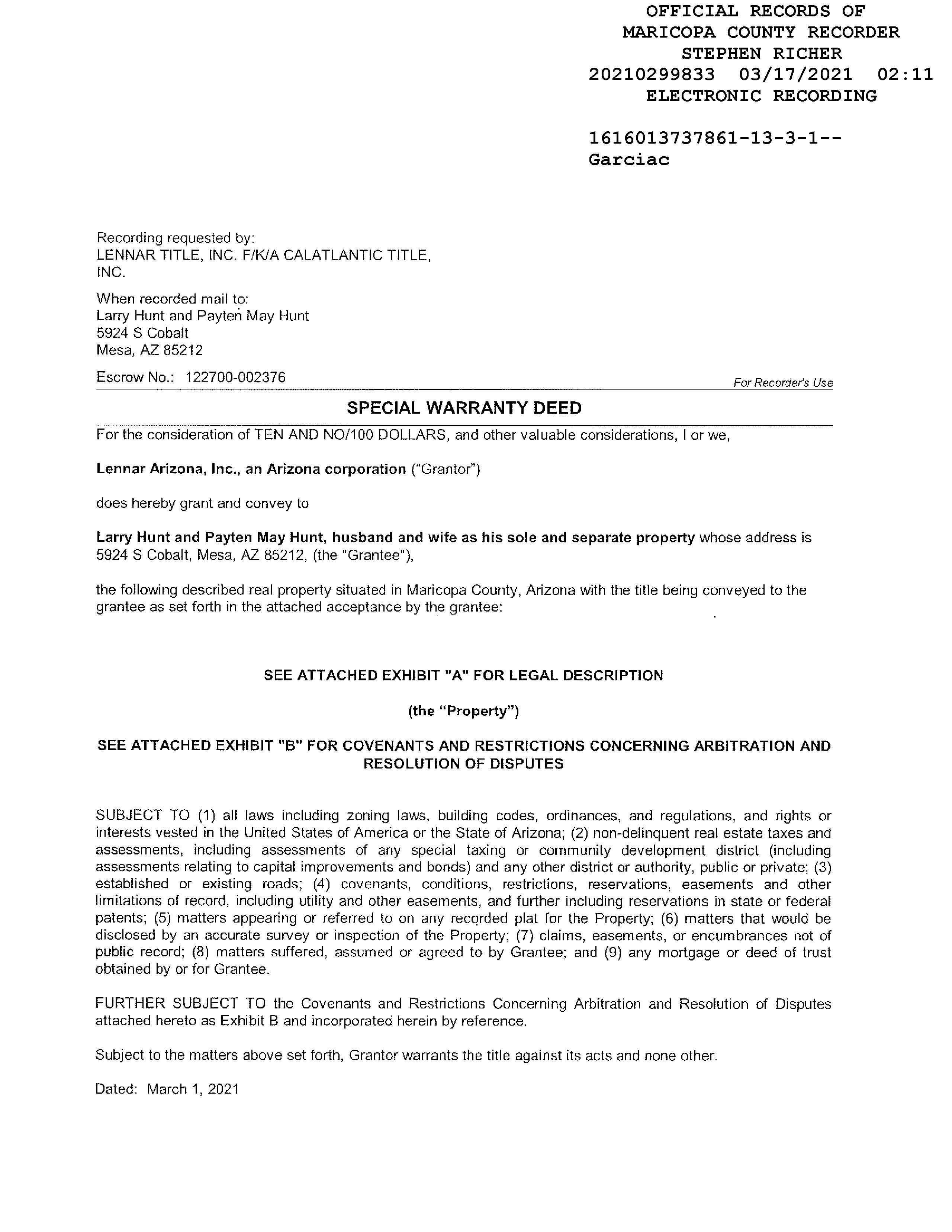 OWNER: HUNT LARRY & PAYTEN MAY 2021 299833 03/17/2021