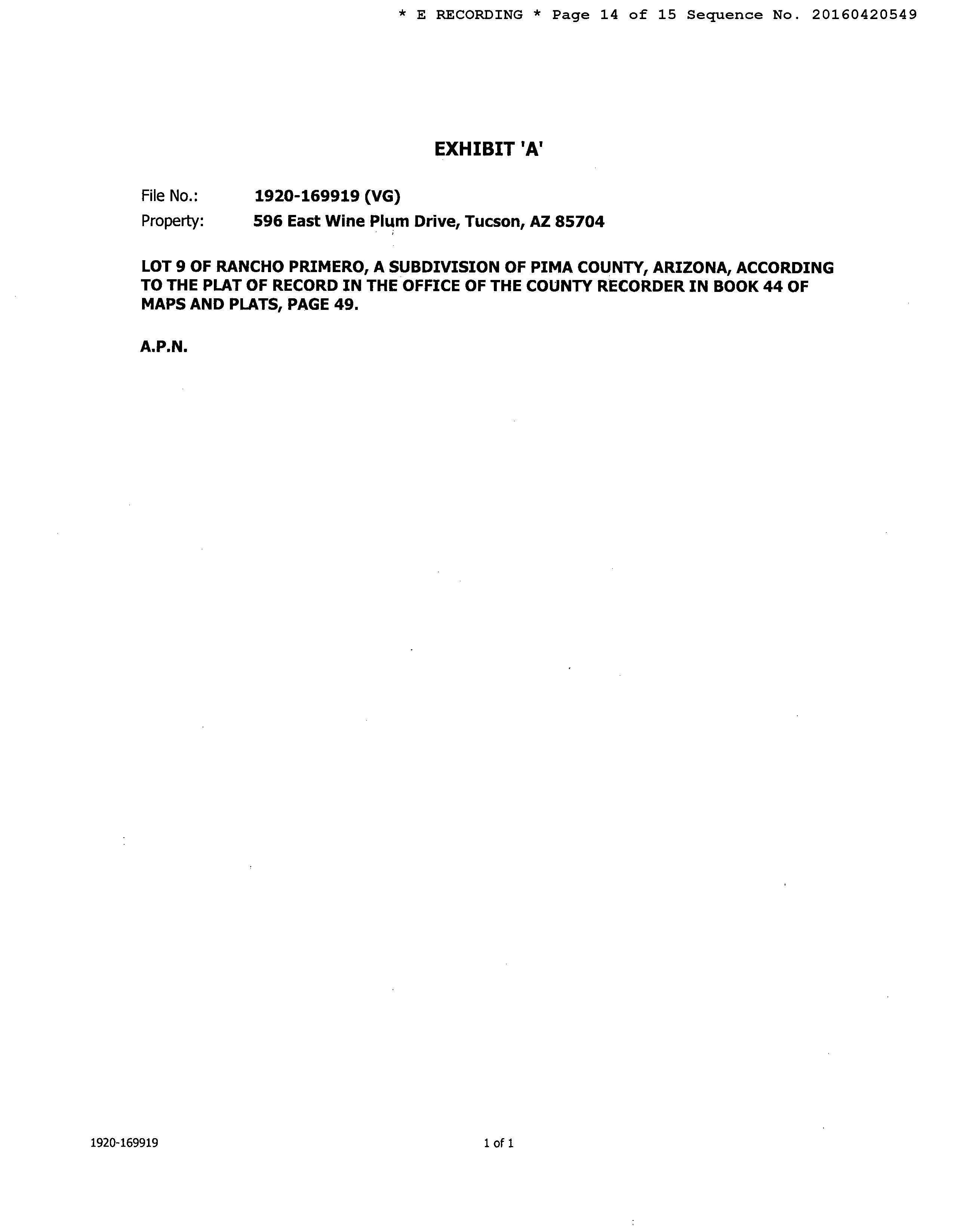 Subject Property : 596 E Wine Plum Dr Tucson AZ 85704