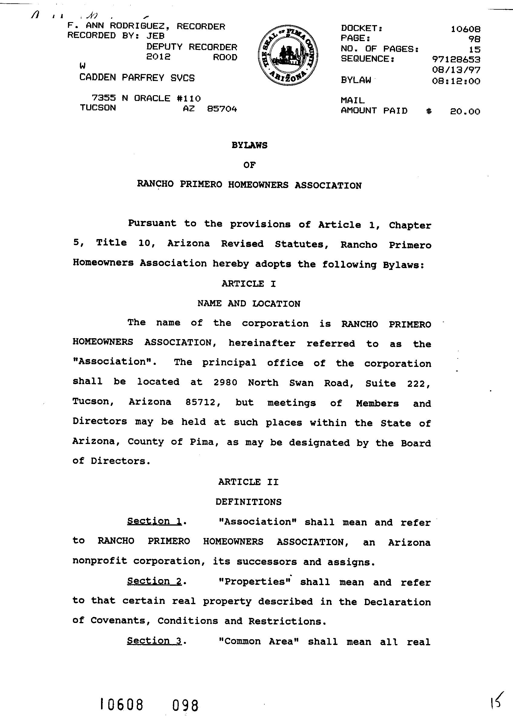 Owner Name : Snively William R Subdivision : Rancho Primero
