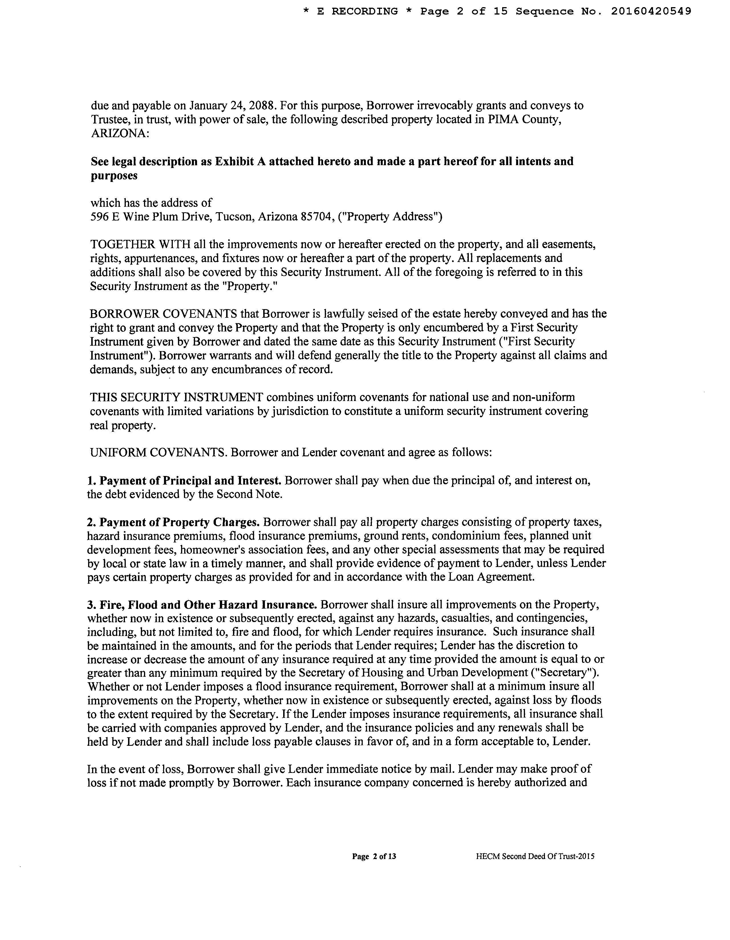 #15 6631 N Camino Abbey Tucson Az 85718 Owner Name: Domais Justin L /Domais Jessica C