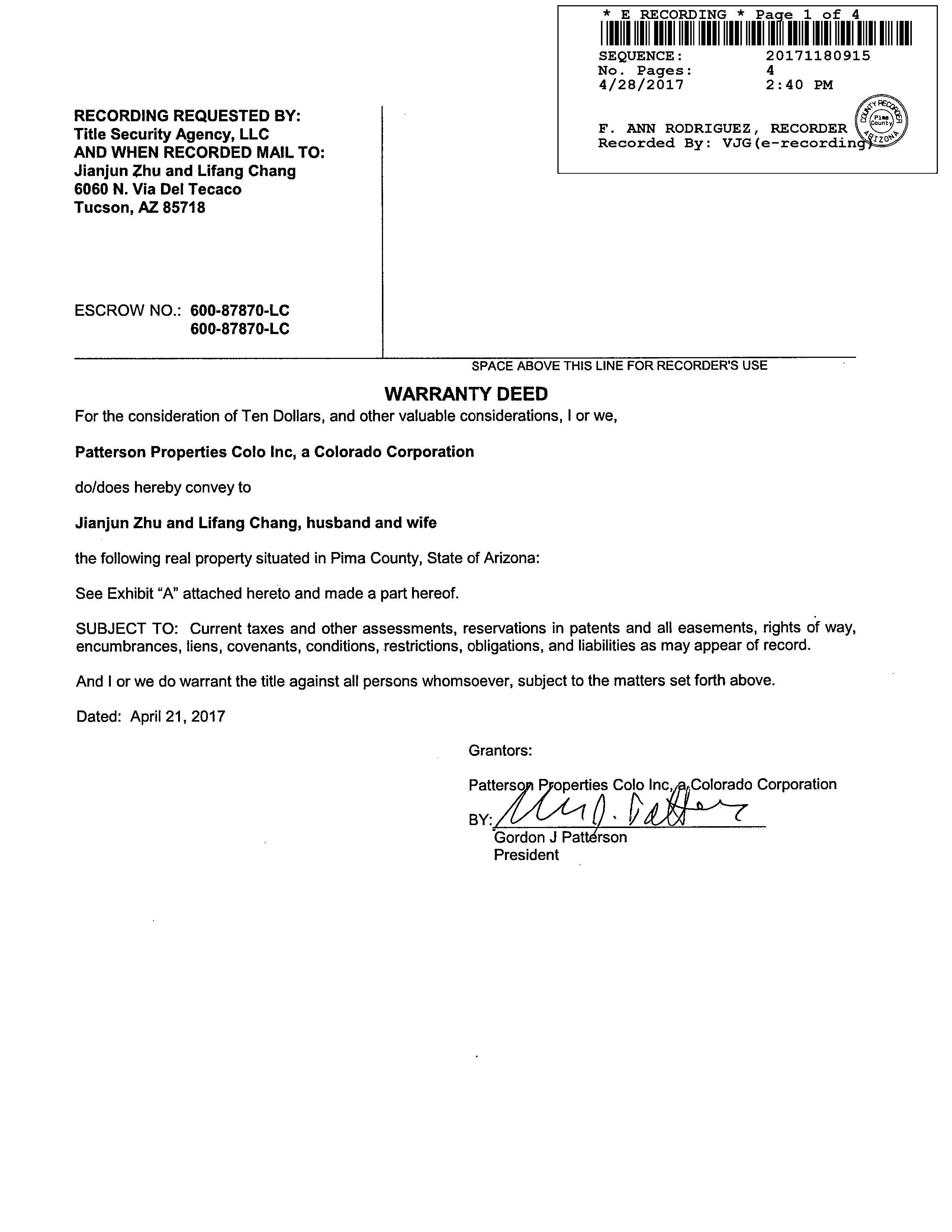11624 898 WD LINDER JAMES R/WENDY B 02/27/1996 375,000 10239 55 JD MAY JOHN J TRUSTEE 08/20/1993 367,087 9610 1295 JD FIRST AMERICAN TITLE T4387