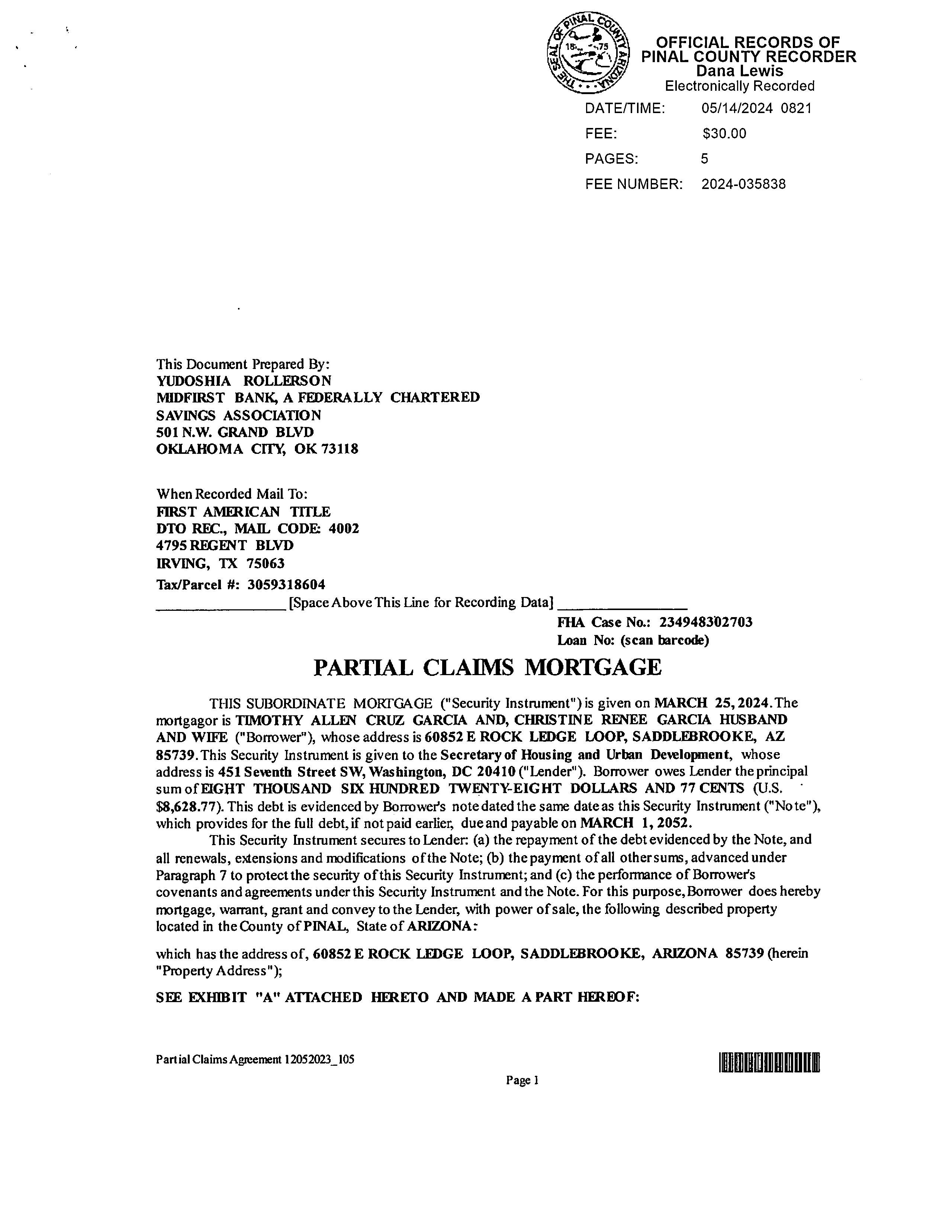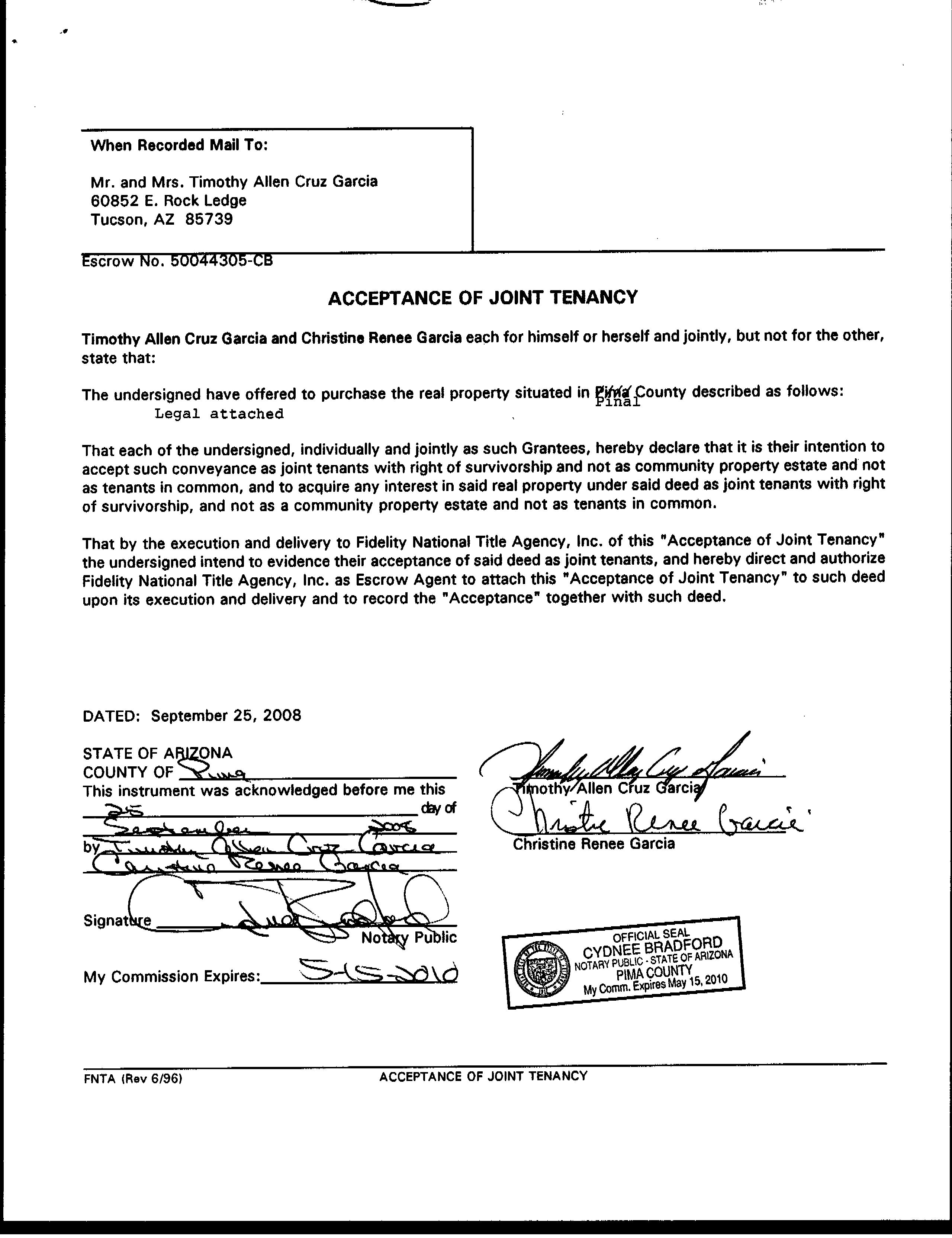 Mailing Address : 60852 E Rock Ledge Loop, Tucson AZ 85739-1970 R087