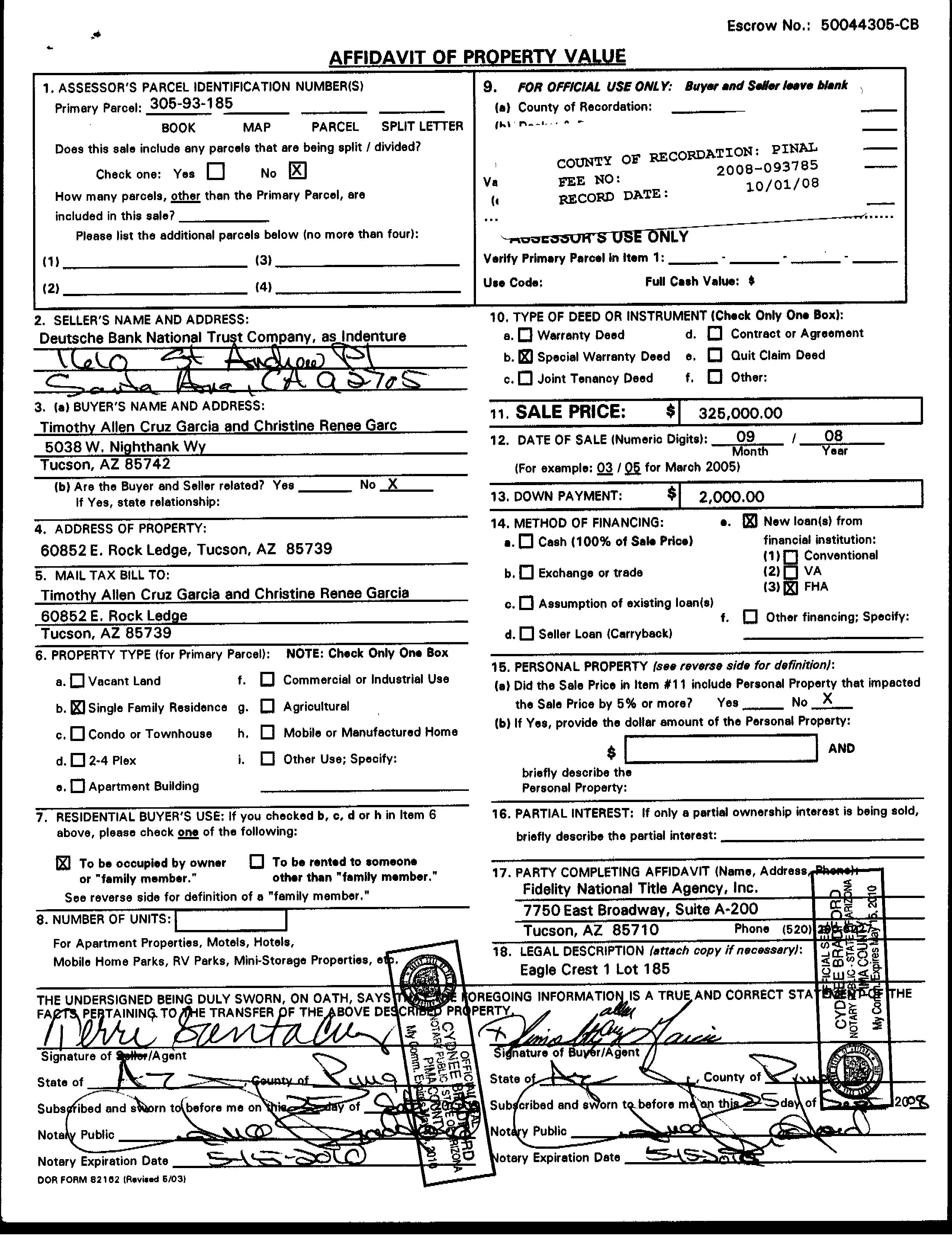This information is furnished without fee and without benefit of a complete title search. No liability is assumed by First American Title. If it is desired that liability be assumed, you may apply for a policy of title insurance with First American Title Insurance Company.