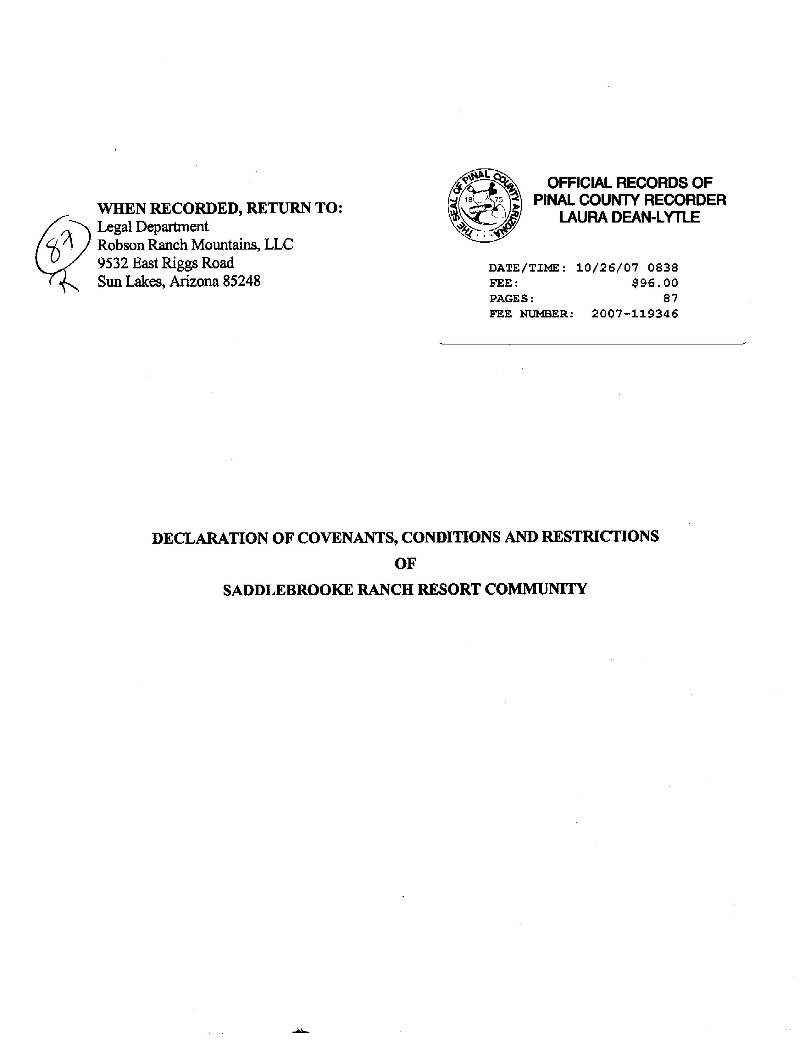 Subdivision / Tract: Saddlebrooke Ranch / Lot Size: 7,405