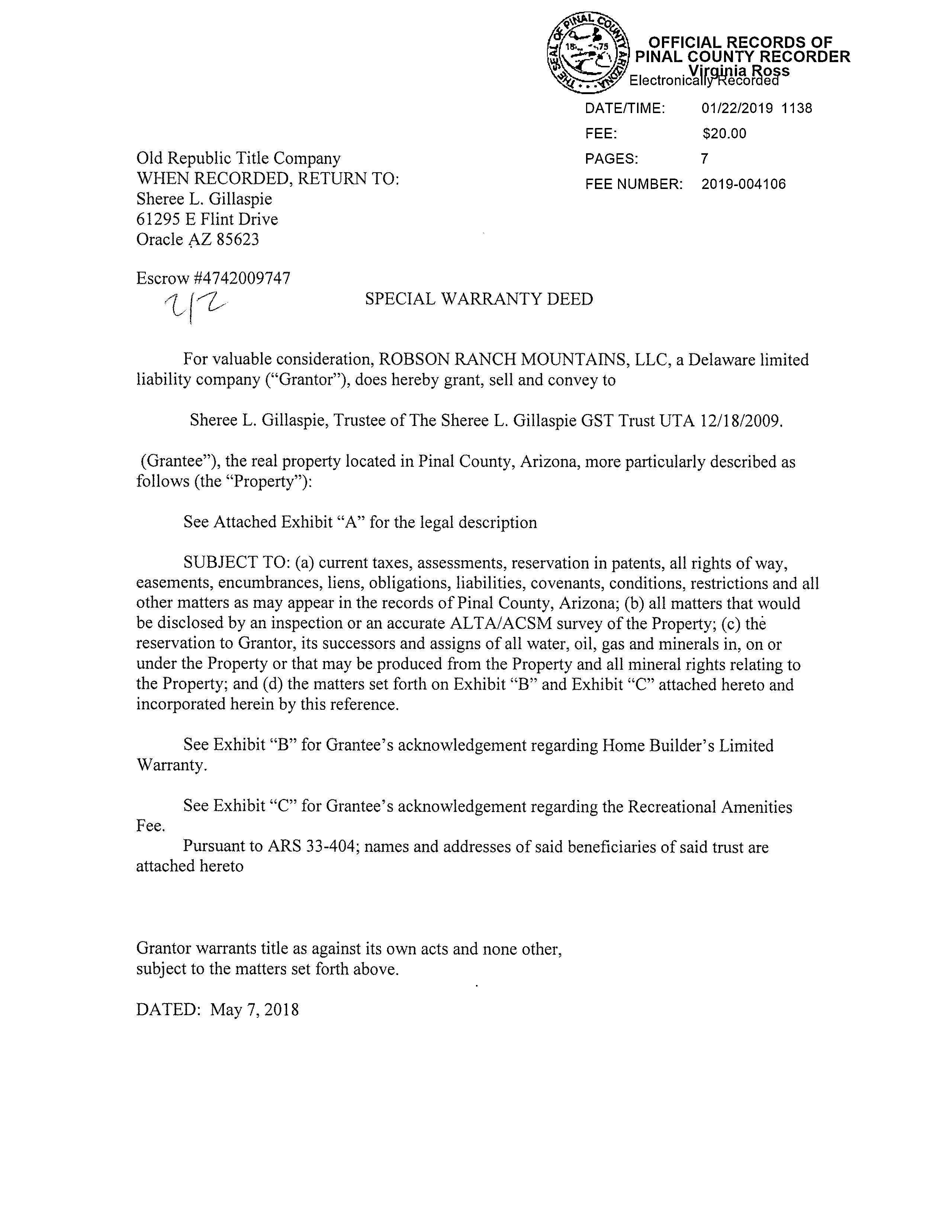 Owner Name: Gillaspie Sheree L Gst / APN / Alternate APN: 305-15-077 / Deed Type: Special Warranty Deed