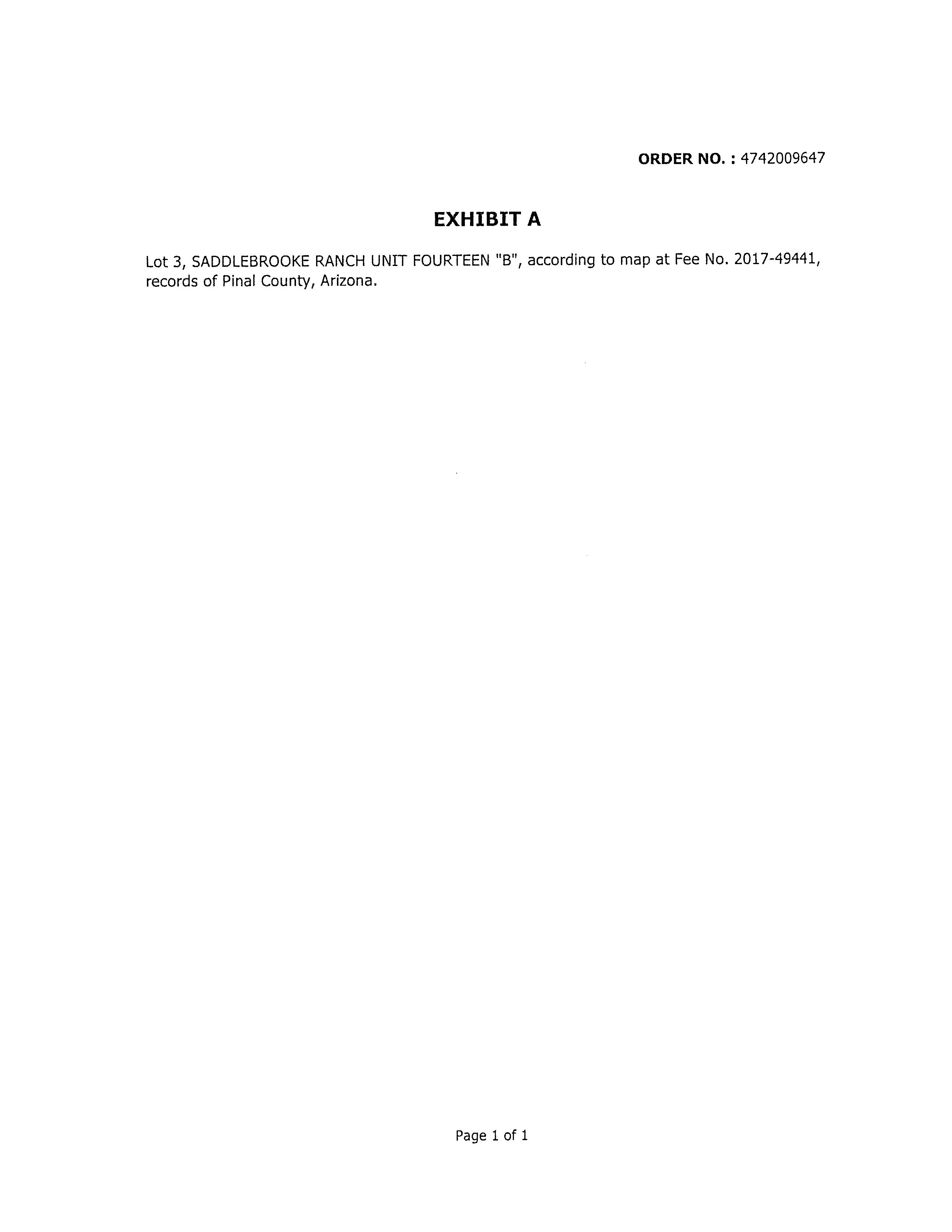 Legal Description : Lot 3 Of Saddlebrooke Ranch Unit Fourteen B In Plat Fee 2017-049441 In Section 04, Township 10 South, Range 14 East 3960 Square Feet 0.09 Acres