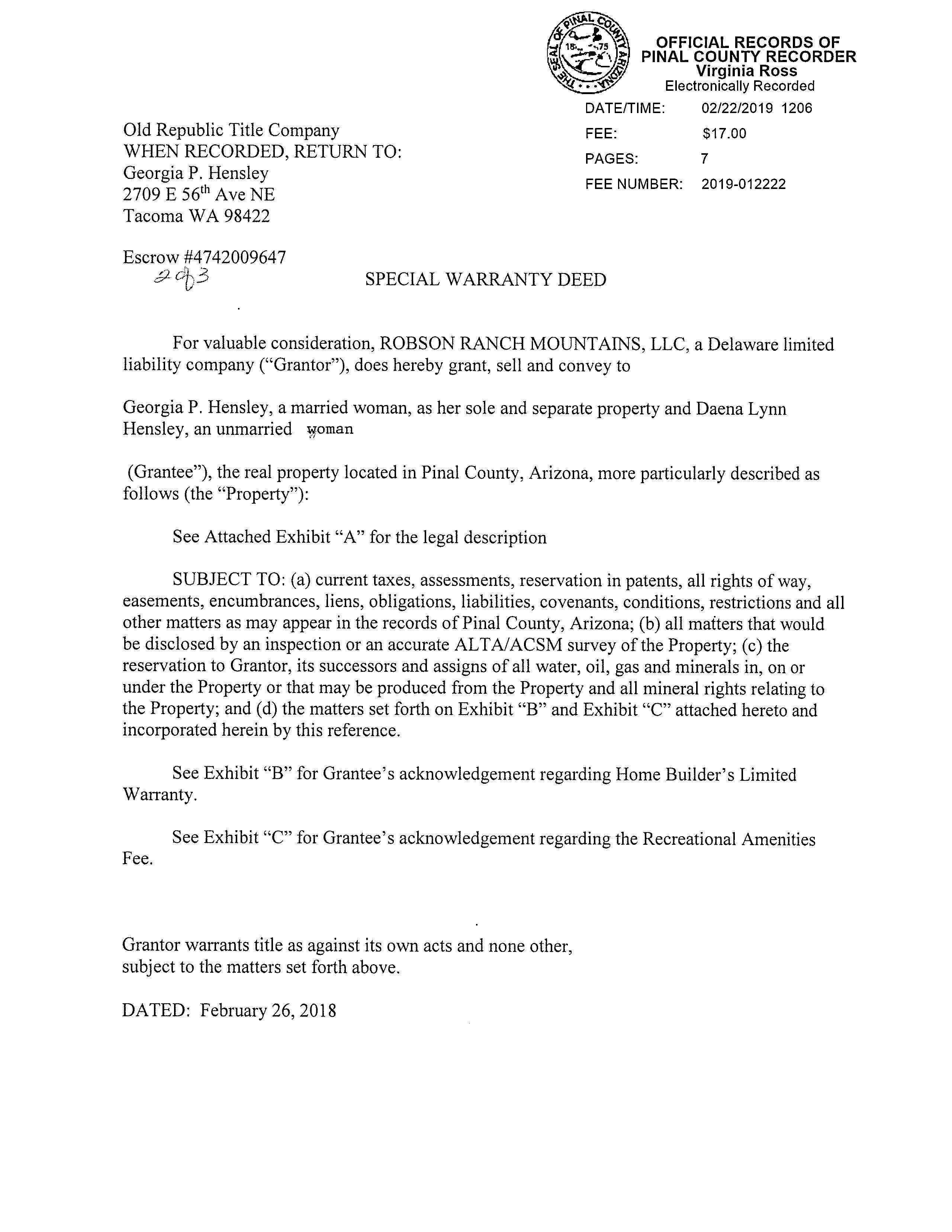 Prior Rec/Sale Date : 02/22/2019 / 02/26/2018
