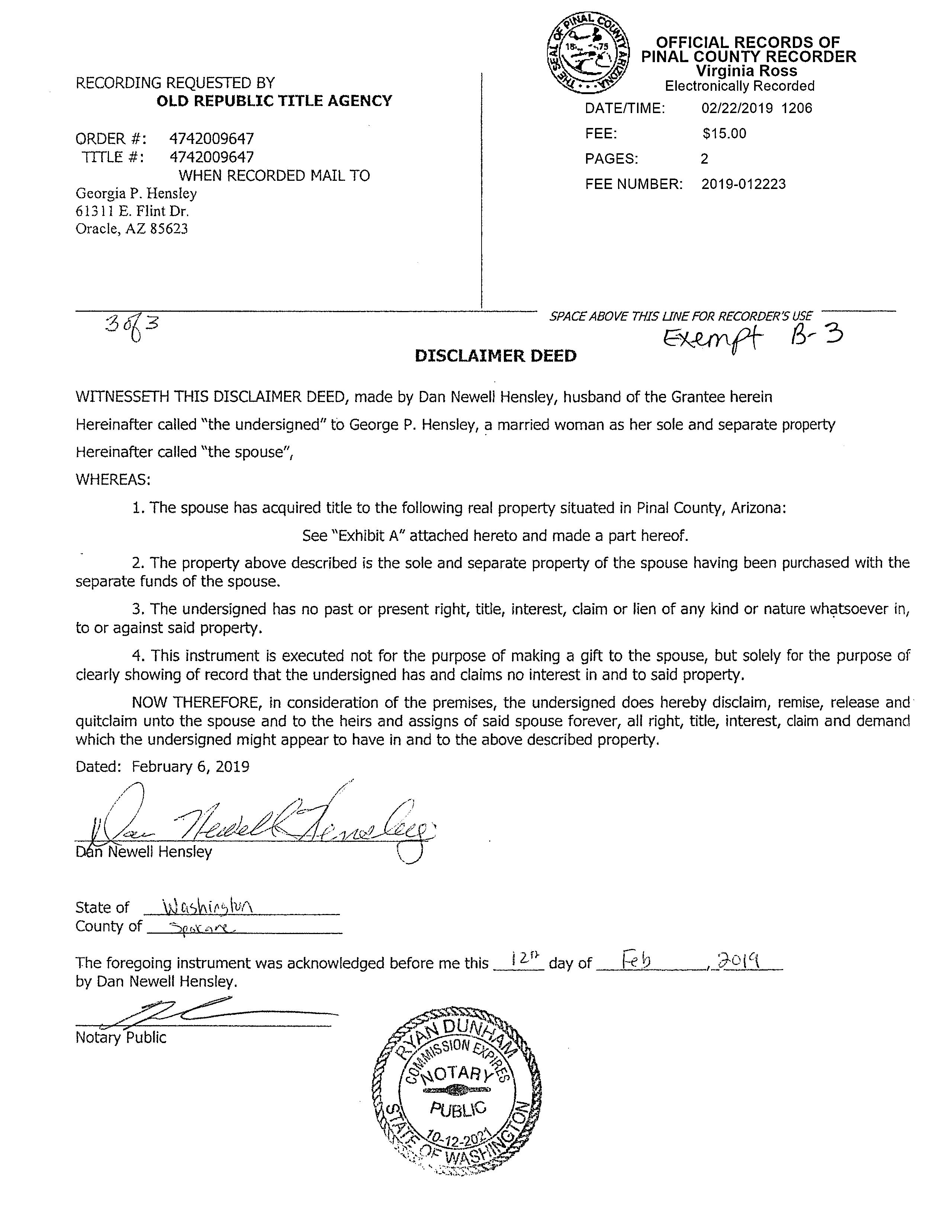Mailing Address : 61311 E Flint Dr, Oracle AZ 85623-1440 H004