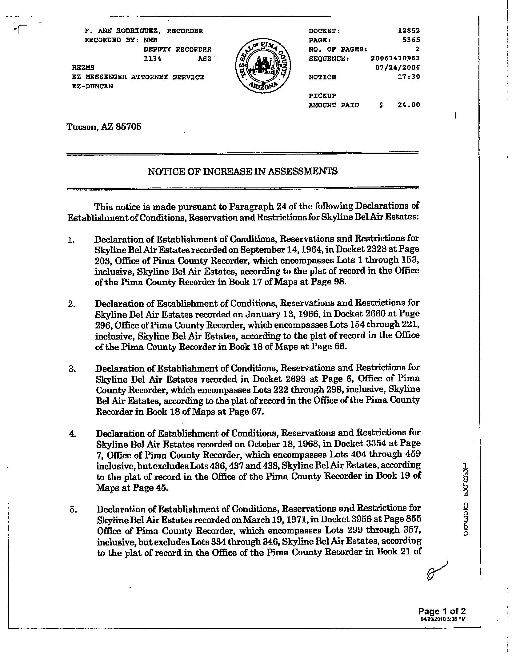 Mailing Address : 6252 N Camino Almonte, Tucson AZ 85718-3732 C045