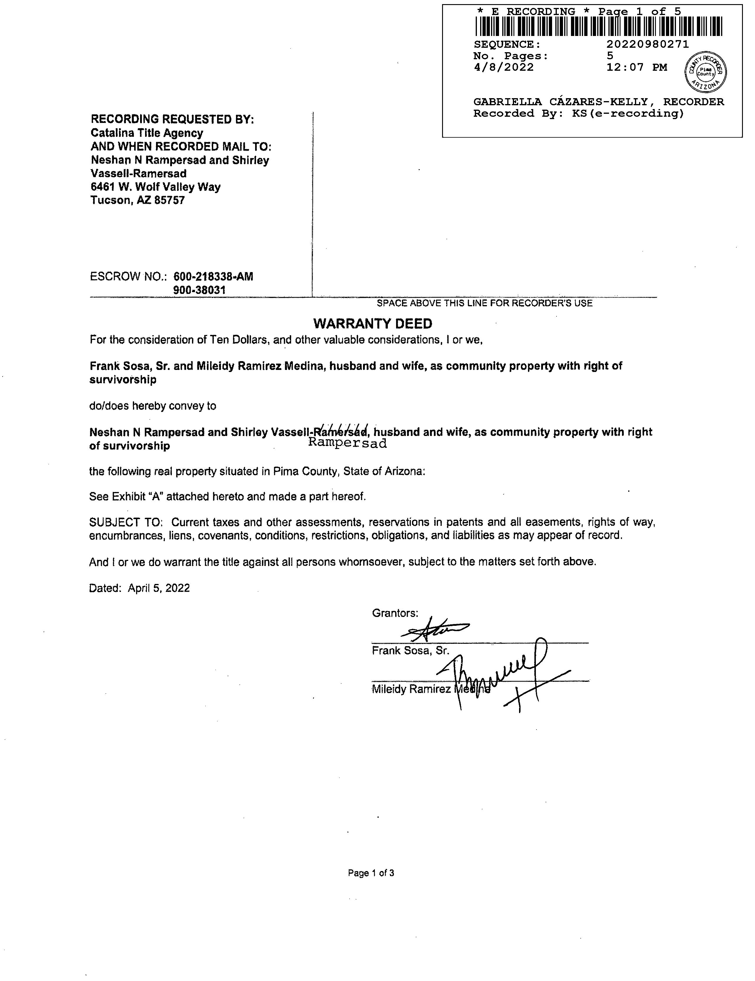 OWNER: RAMPERSAD FAMILY REVOCABLE AFFIDAVIT 2025 1180597 04/28/2025