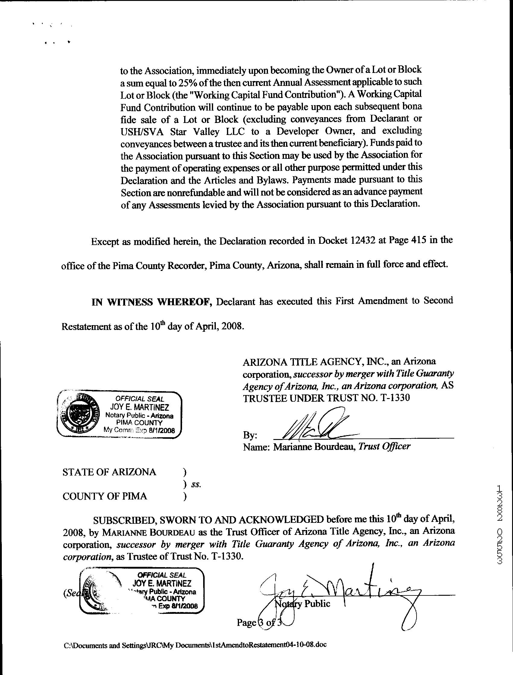 Know that our wiring instructions do not change so any communication is suspect. Our banking institution is First American Trust.