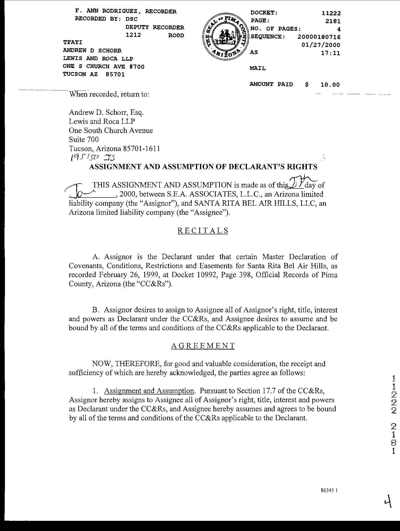 MAIL: 658 S PAINTED RIVER WAY VAIL AZ 85641