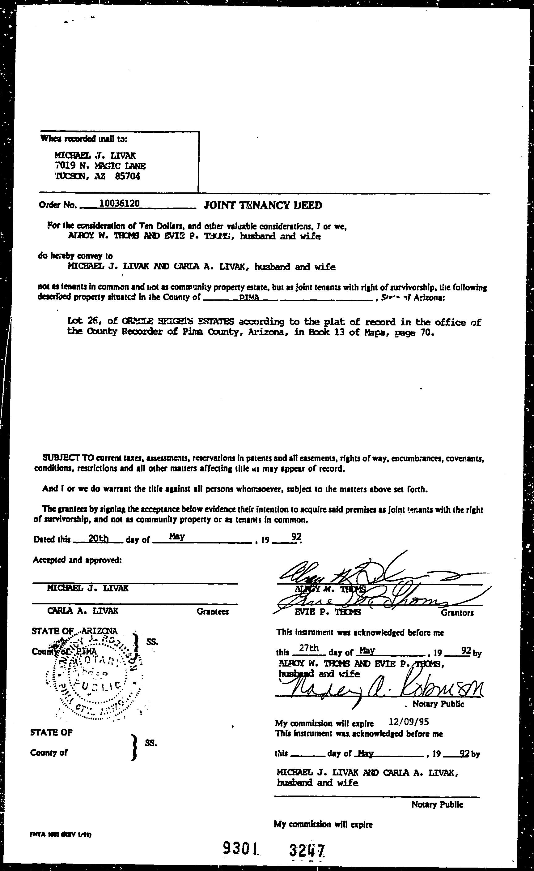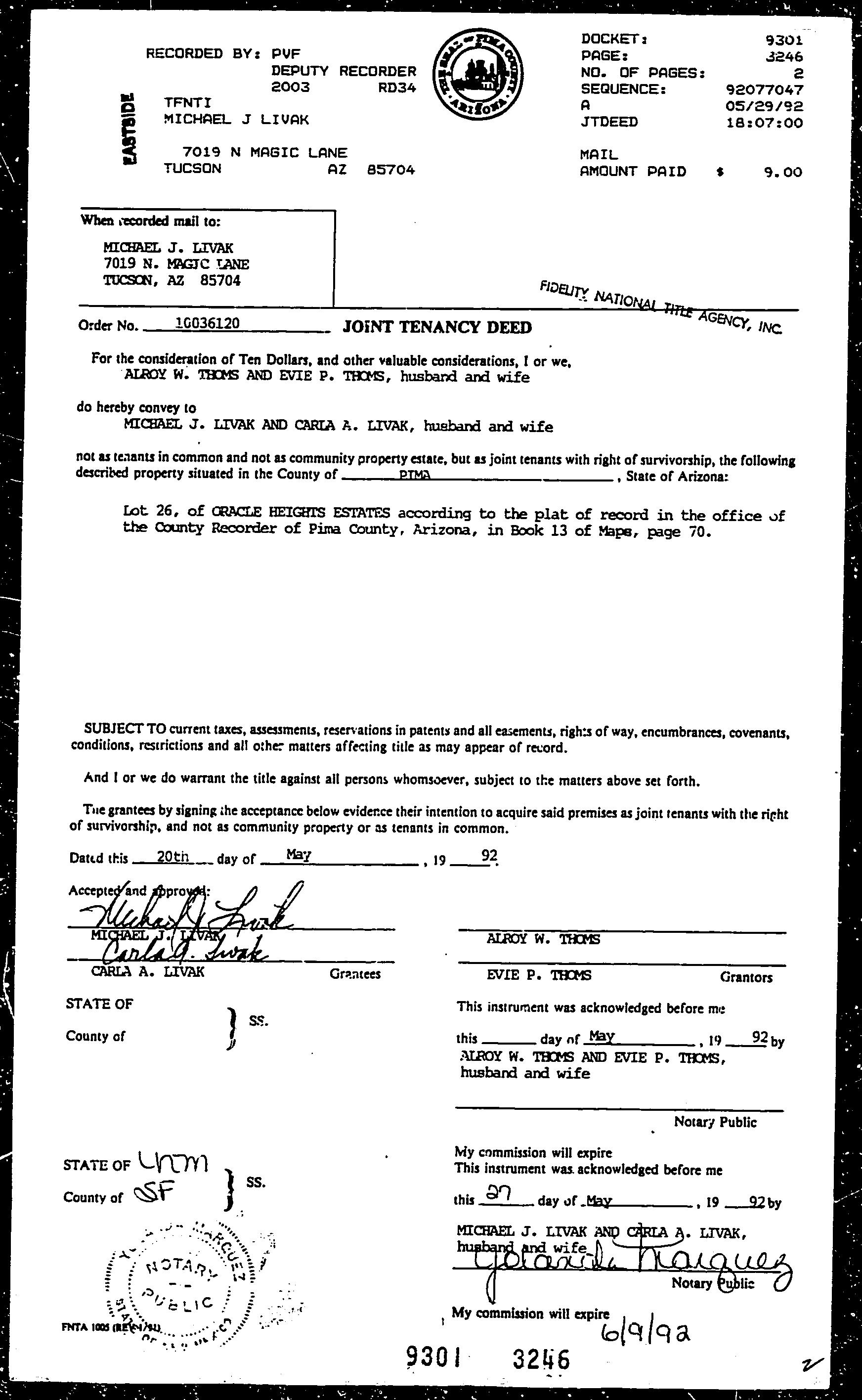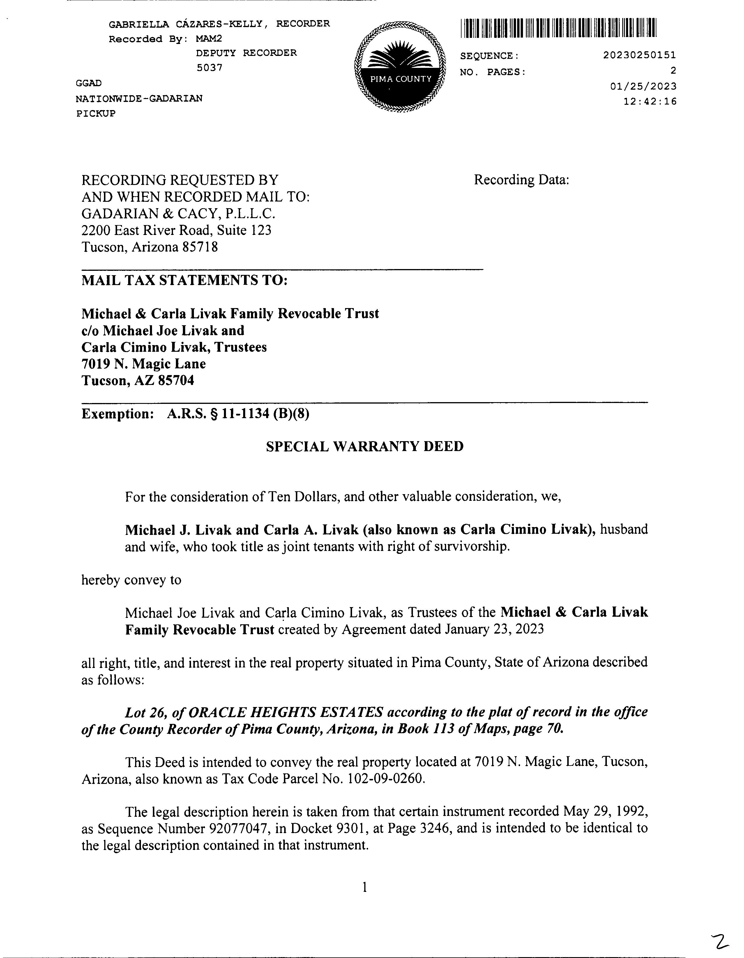 OWNER: MICHAEL & CARLA LIVAK FAMIL AFFIDAVIT 2023 250151 01/25/2023