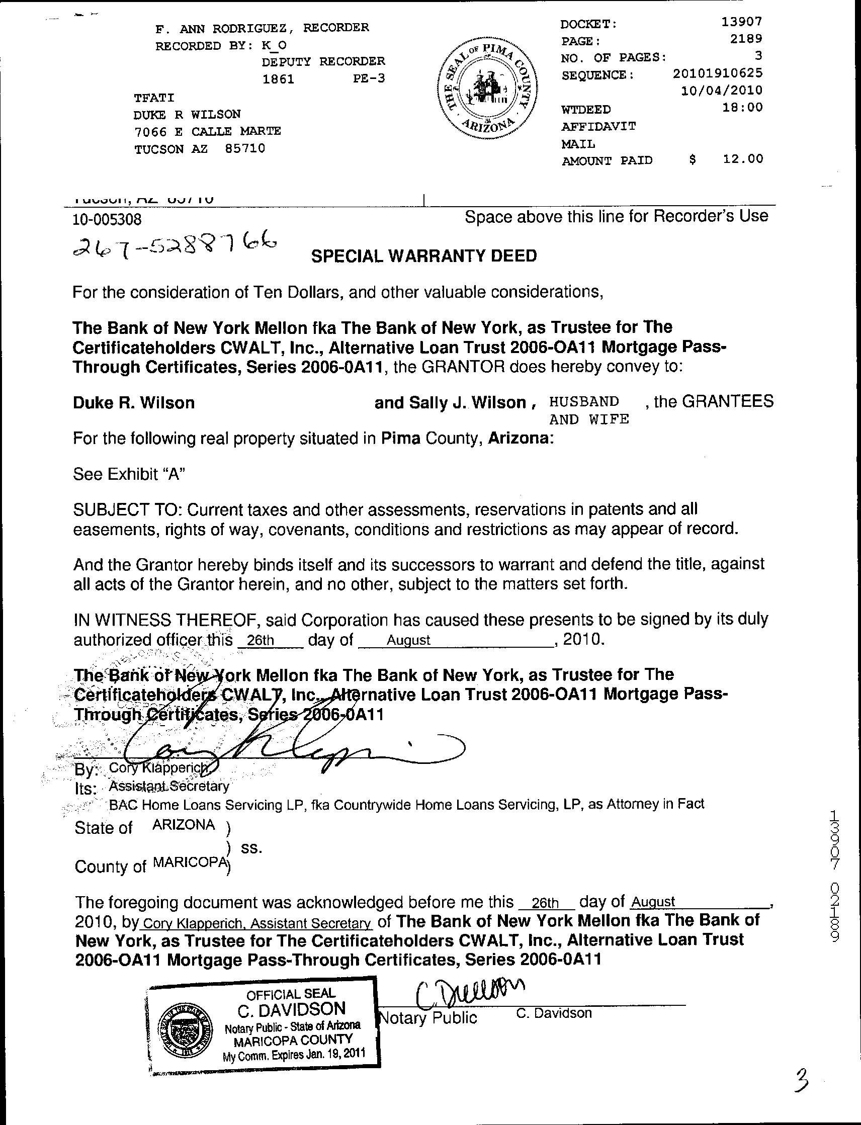Recording/Sale Date : 10/04/2010 / 08/26/2010 1st Mtg Document # : 13907-2192