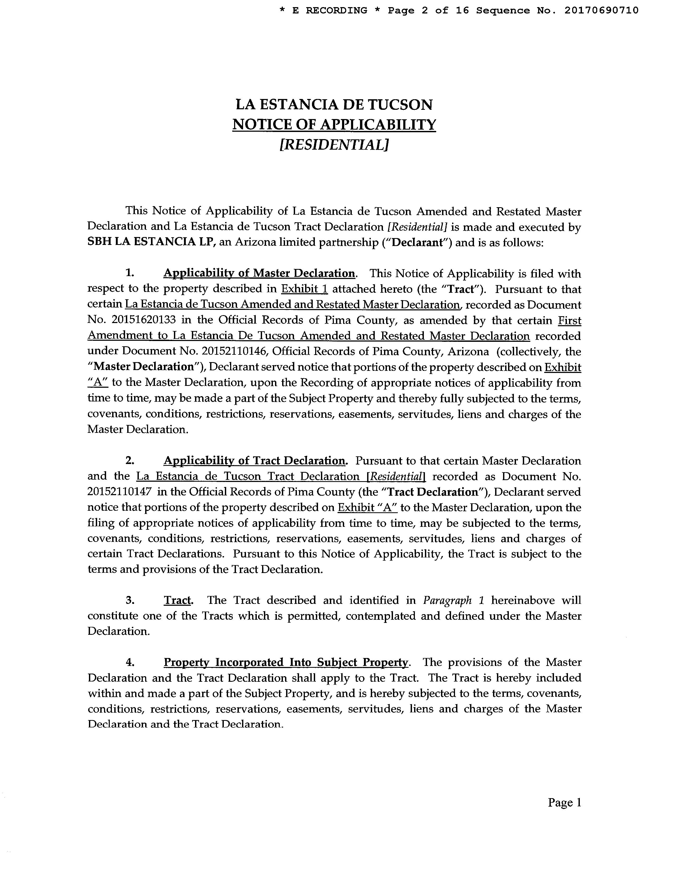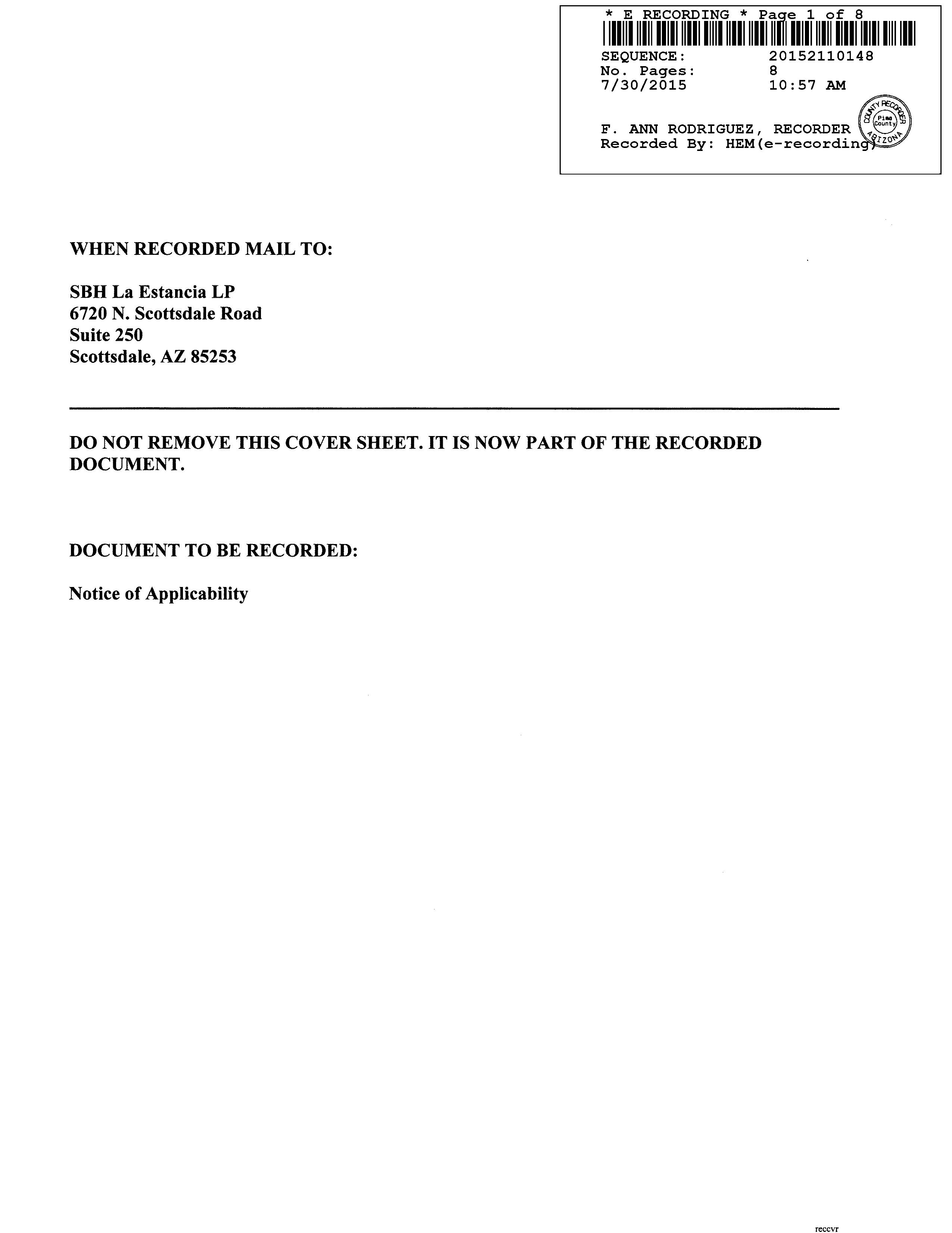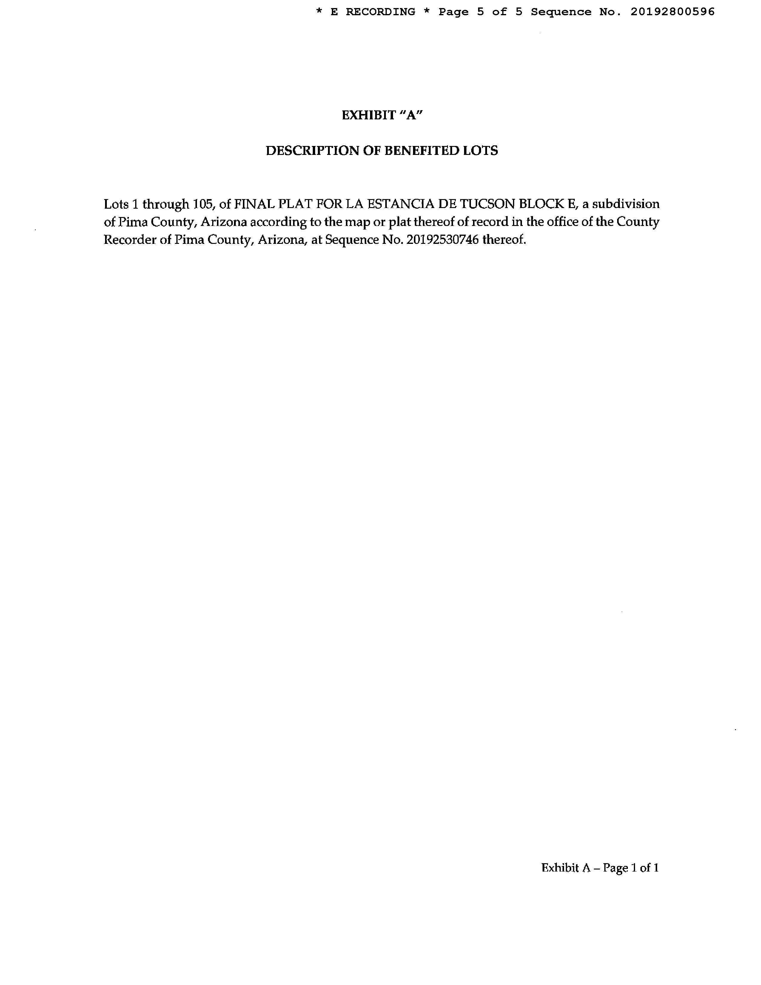 LEGAL: LA ESTANCIA DE TUCSON LOT 601