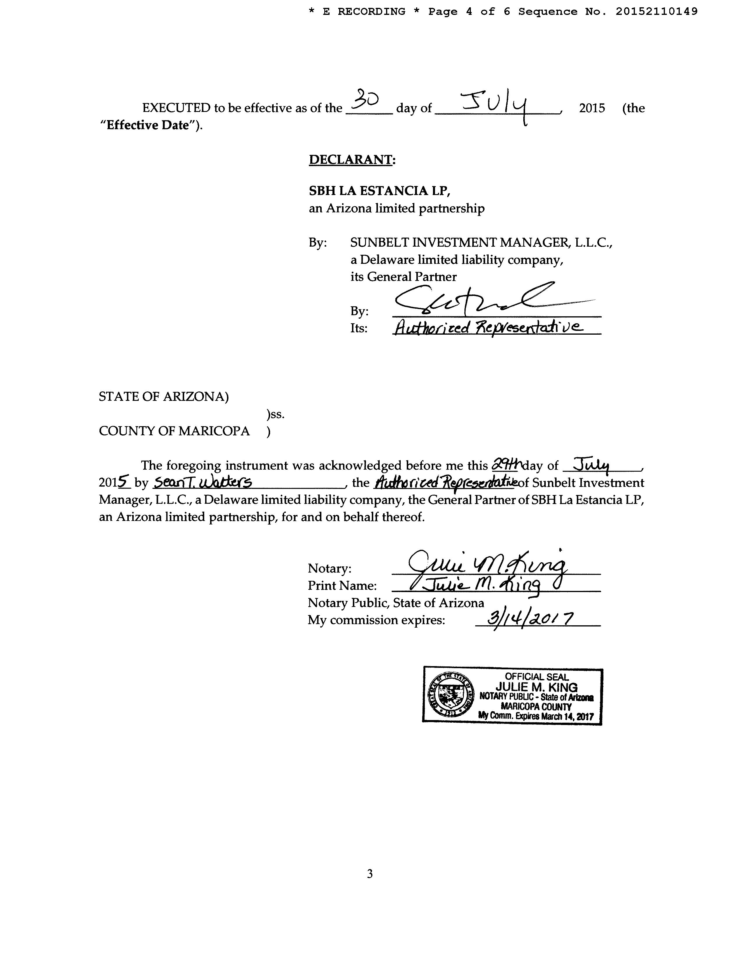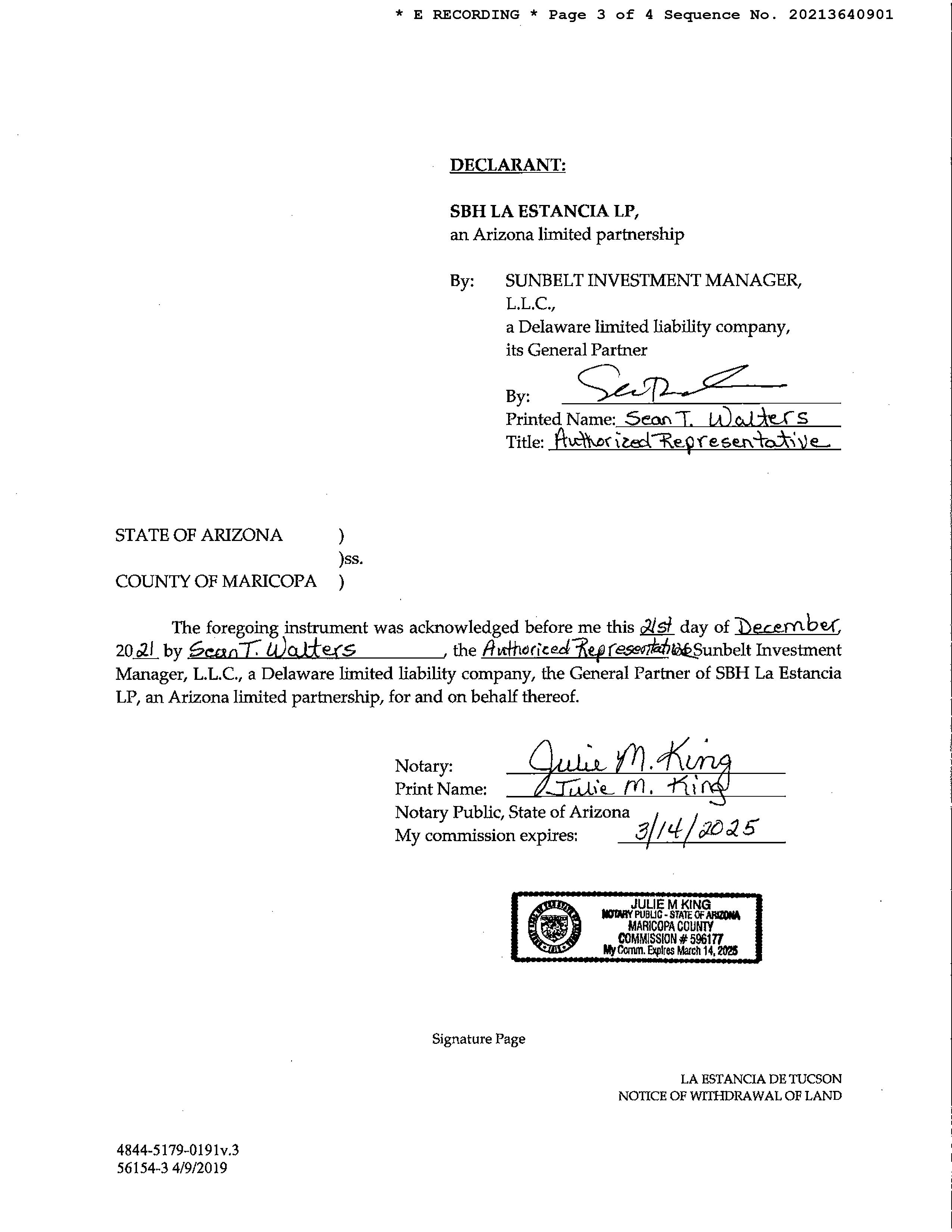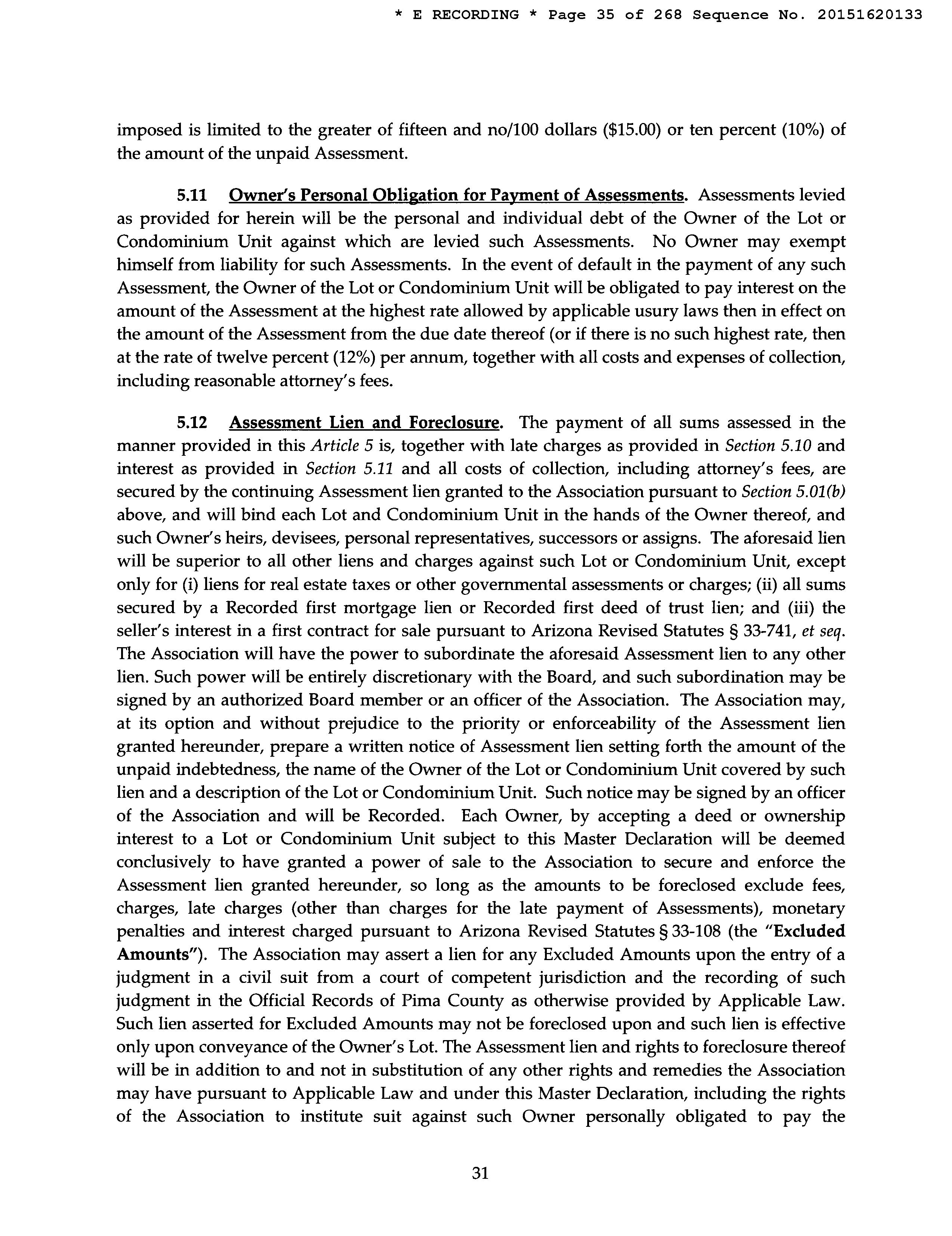 LEGAL: LA ESTANCIA DE TUCSON LOT 601