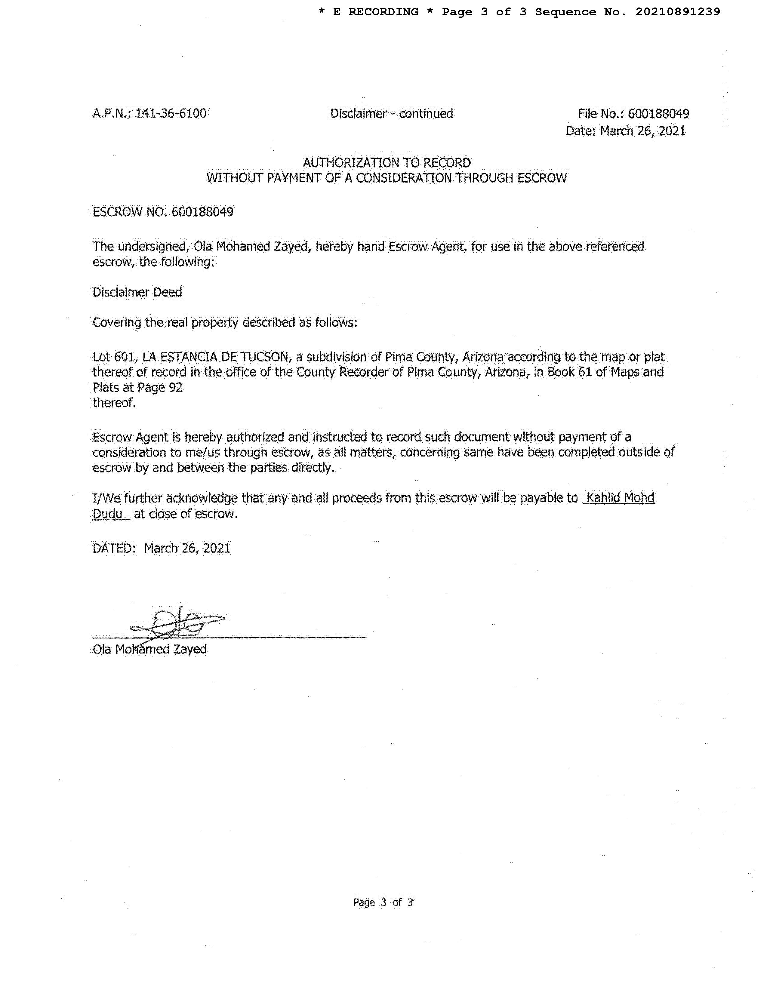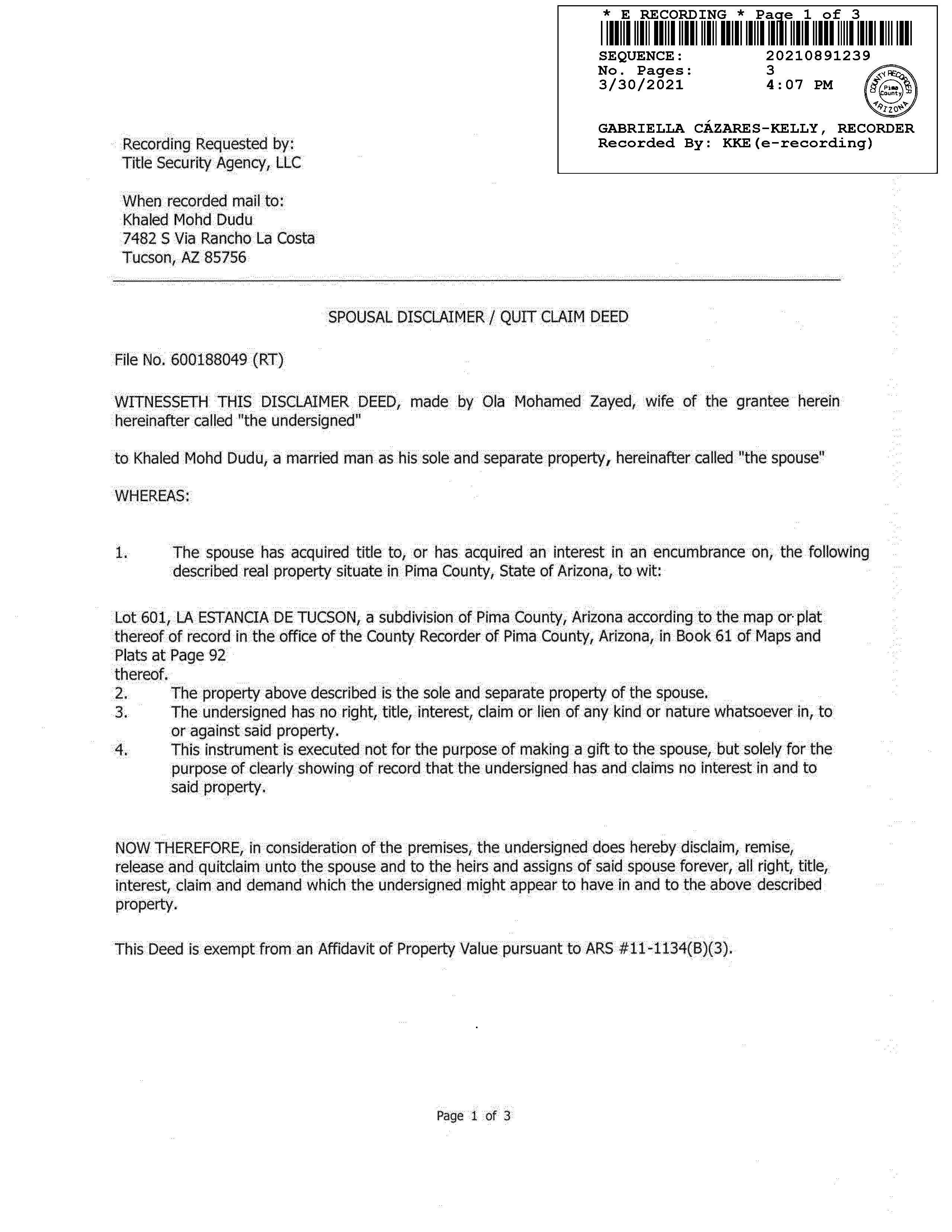 Deed Type : Disclaimer Deed