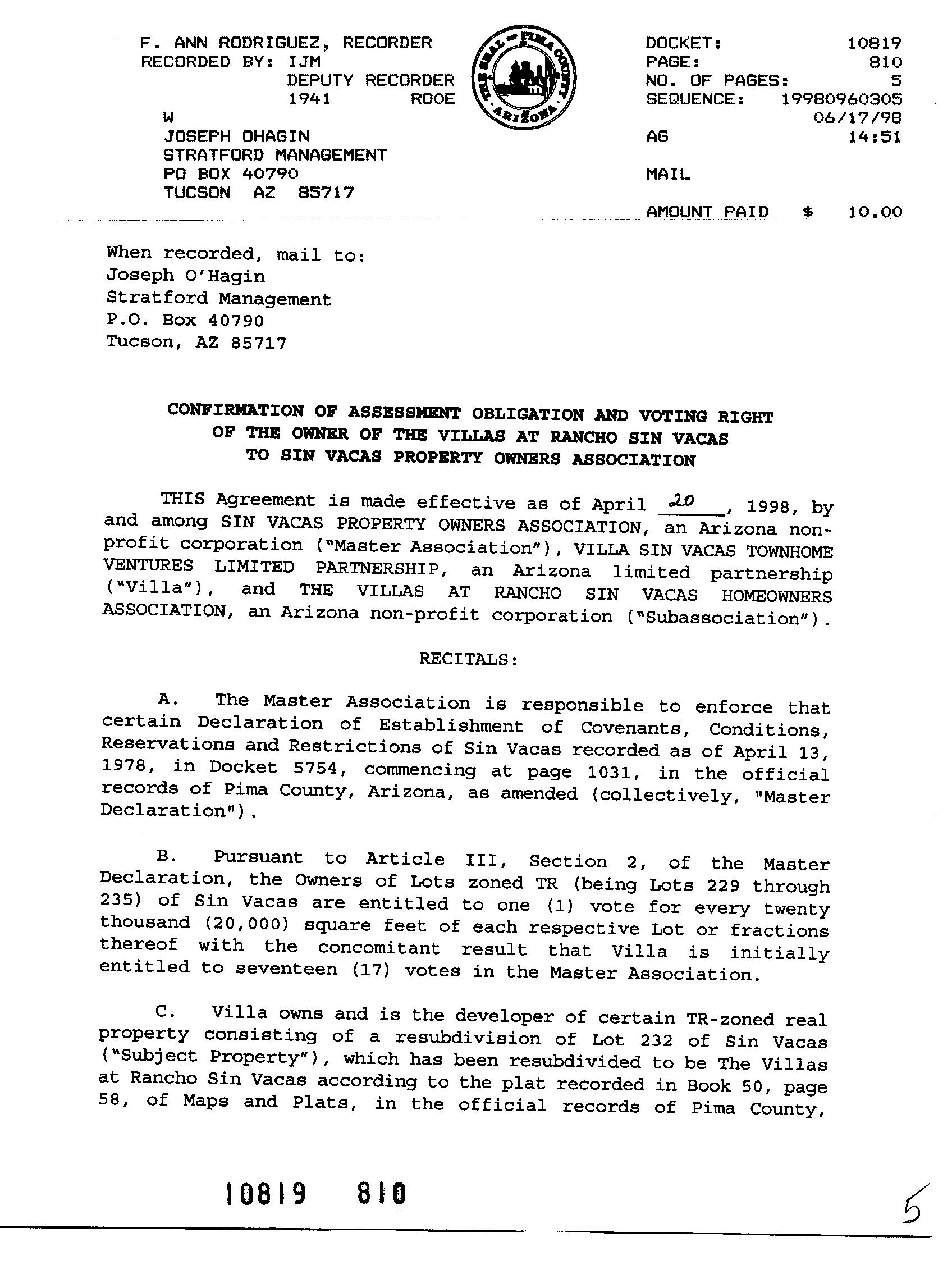 LEGAL: VILLAS AT RANCHO SIN VACAS (THE) UNIT 49 LOT 0049 (11345/627 & 630)