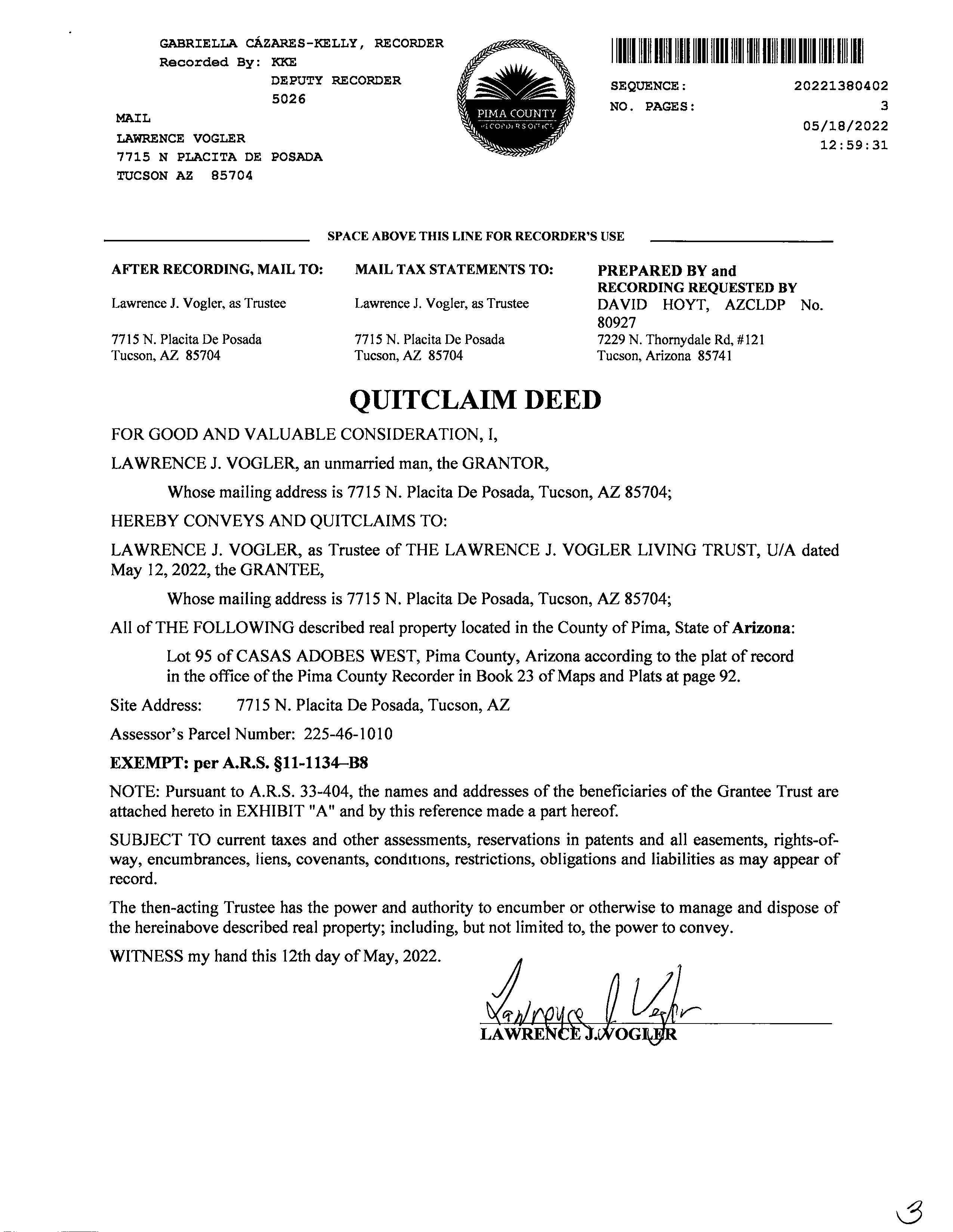 Owner Name : Vogler Lawrence J